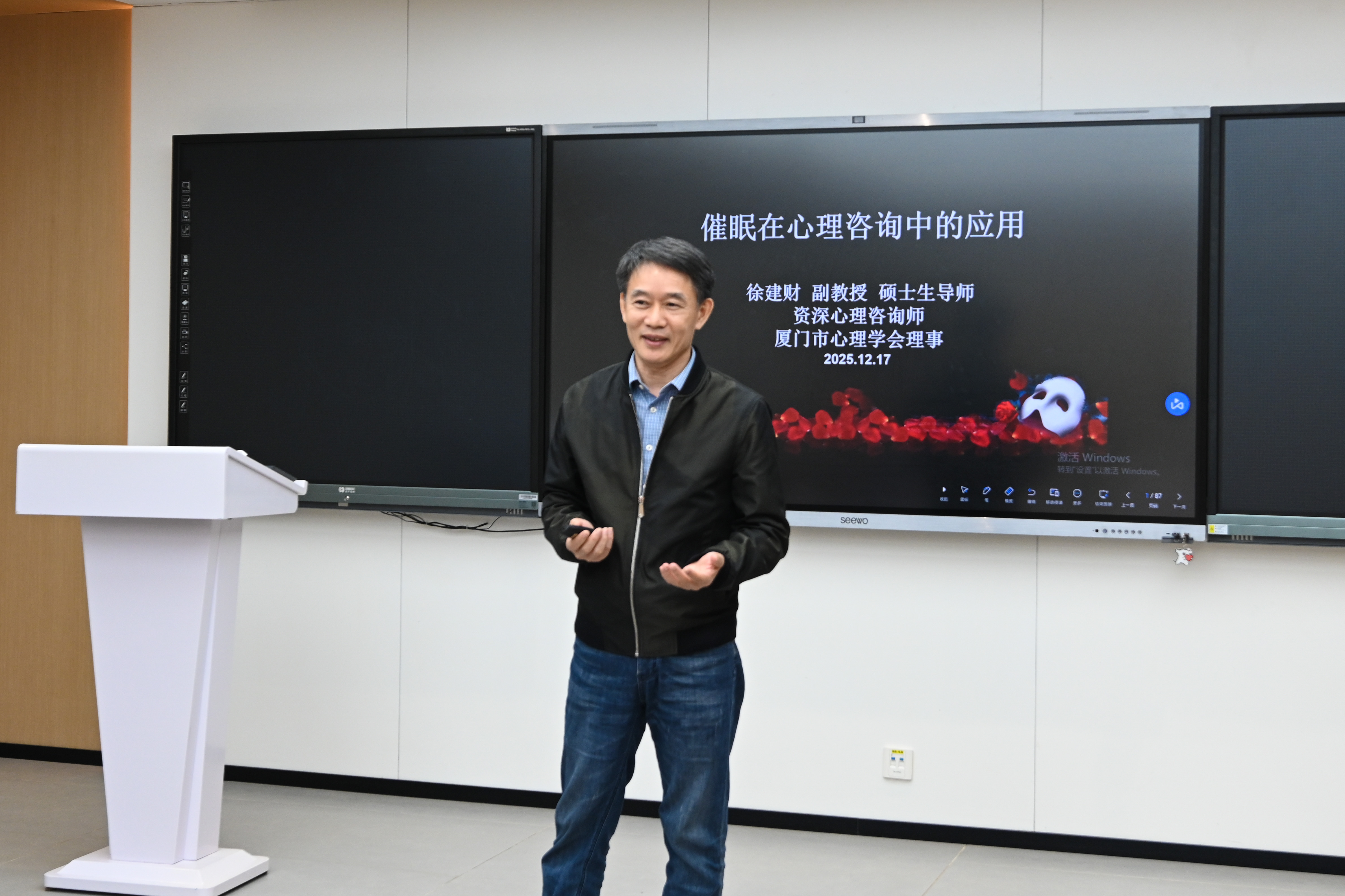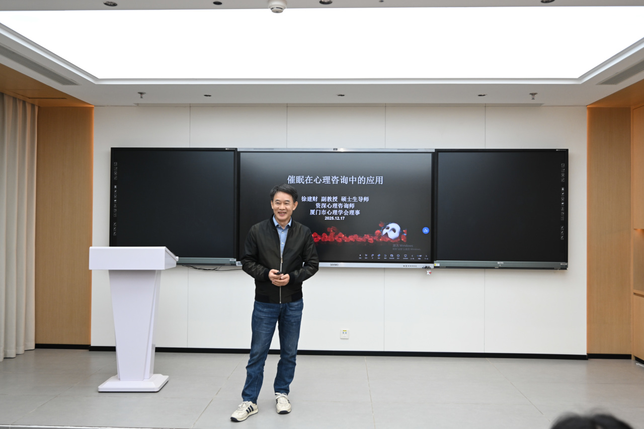 12月17日下午,厦门工学院心理健康知识与技能培训(高级班)在怡心馆多功能活动室成功举办。本次培训以“催眠疗法技术应用”为主题,特邀徐建财老师主讲。