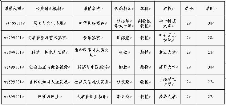 本次针对全校学生开设17门网络公共通识选修课,具体如下: