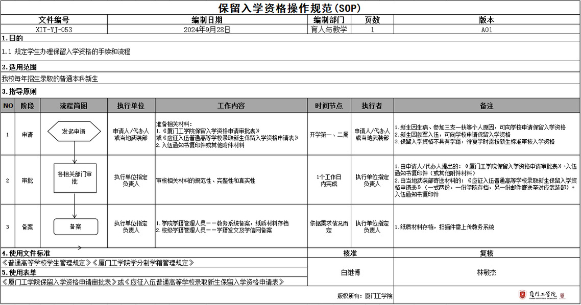 .厦门工学院保留入学资格申请审批表