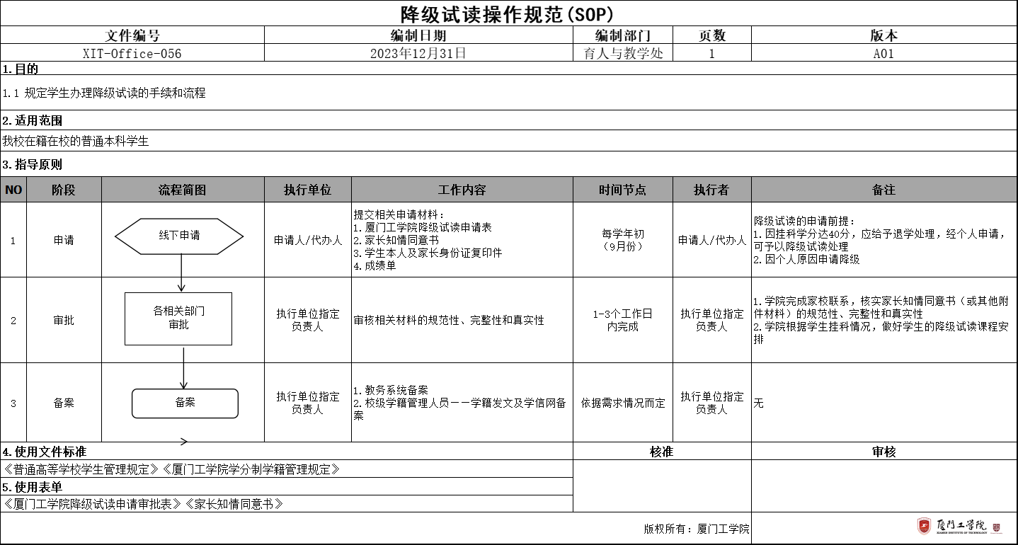 1.厦门工学院降级试读申请审批表