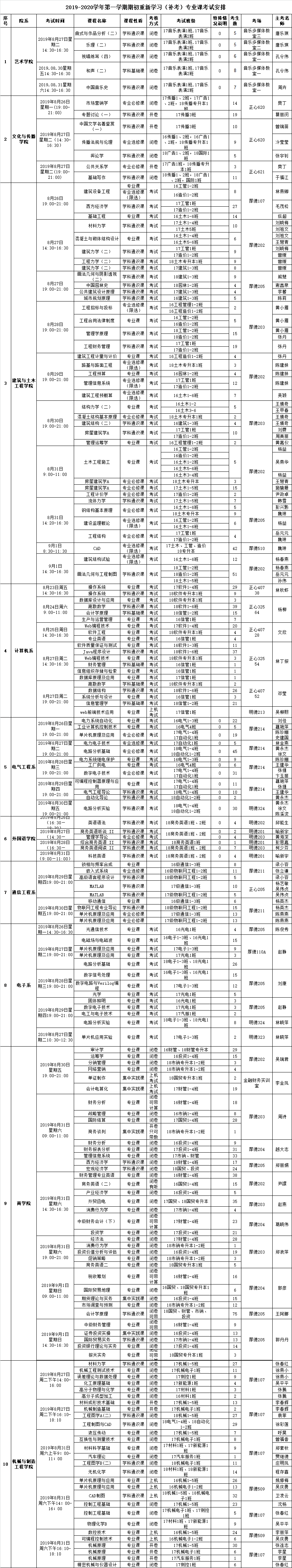 2019-2020学年第一学期期初重新学习(补考)专业课考试安排