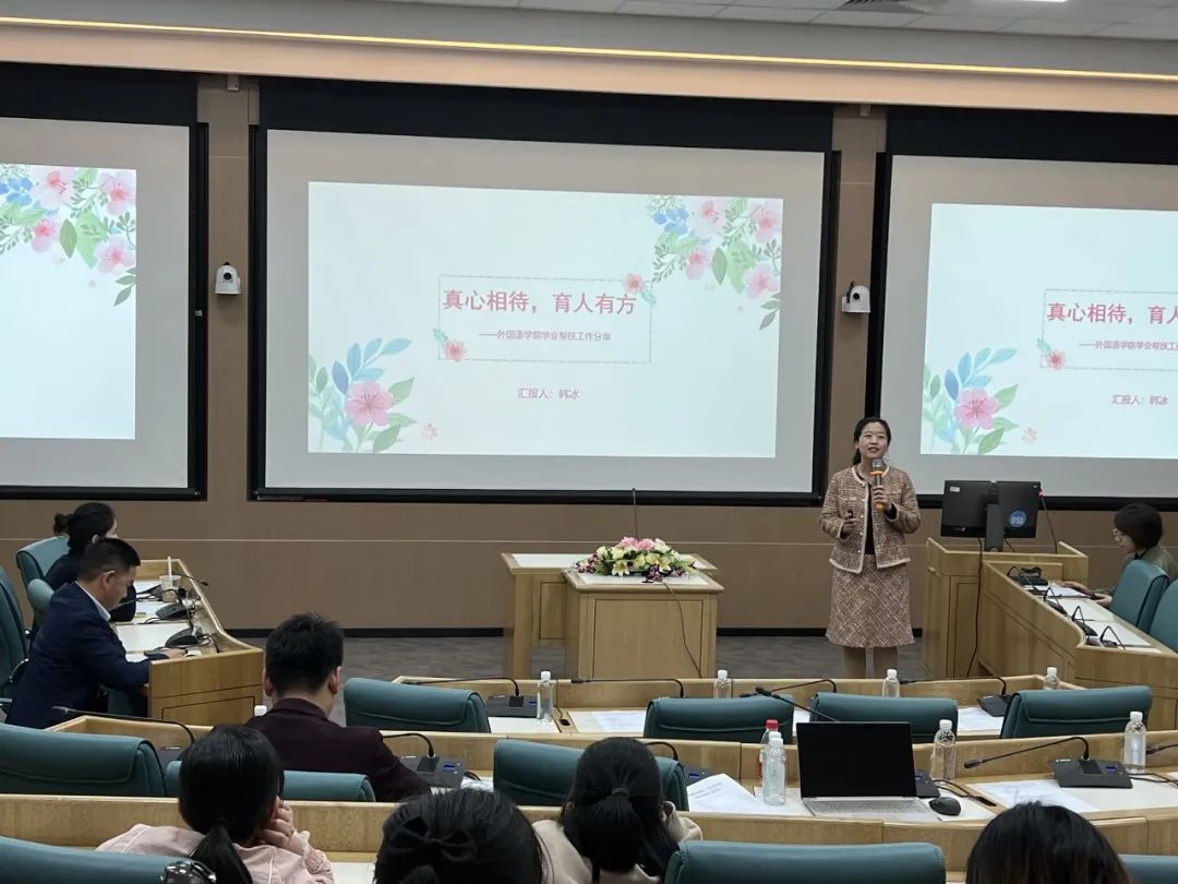 外国语学院的韩冰老师围绕“真心相待,育人有方”为主题,通过与学生“心连心”,真诚倾听的方式,拉近师生间距离。进行了育人工作的分享。