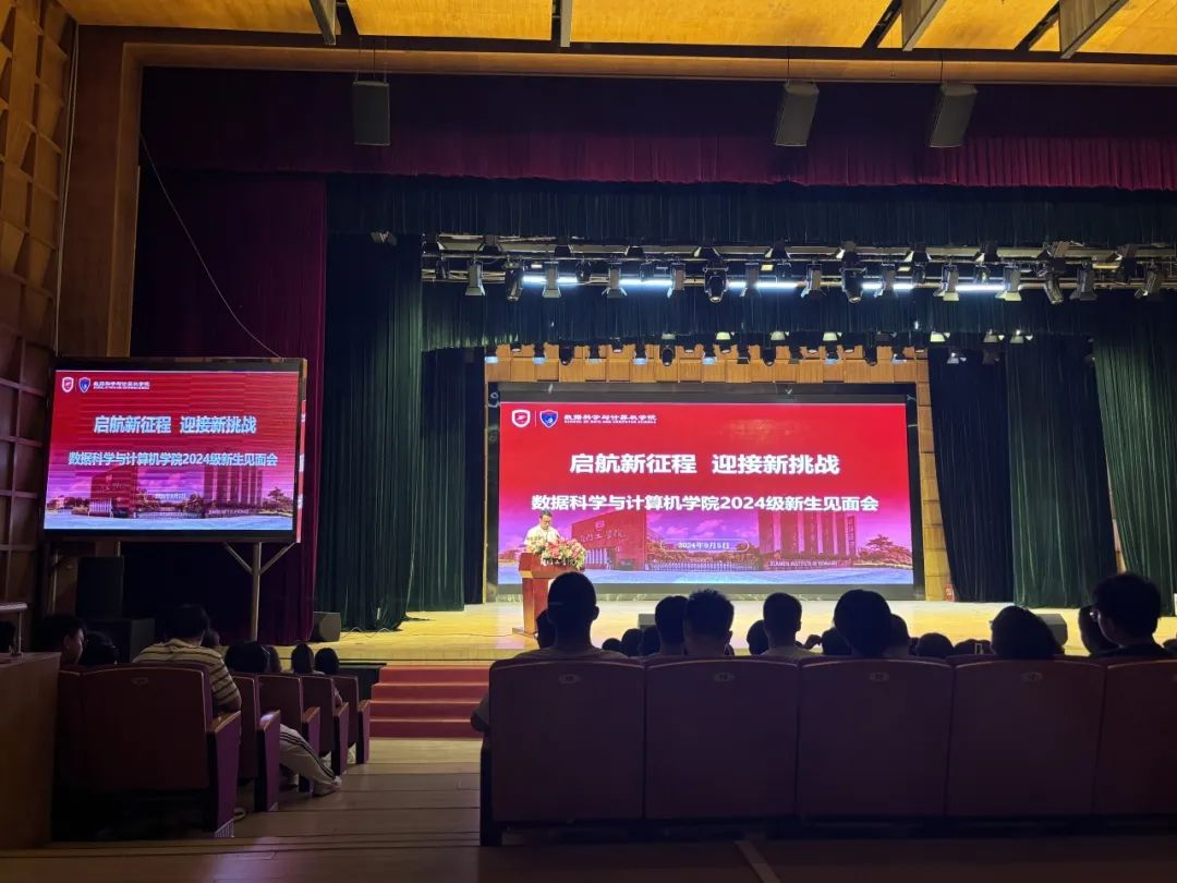 2024 年 9 月 5 日晚,厦门工学院内气氛热烈非凡,数据科学与计算机学院 2024 级新生见面会在这样的氛围中隆重拉开帷幕。本次见面会意义非凡,旨在助力初入校园的新生们迅速融入大学环境,深入了解所学专业的详细情况,并科学合理地规划自己的大学生活。会议由数据科学与计算机学院行政副院长郑小聪老师主持,全体 2024 级新生满怀期待地参与其中,共同开启这场充满希望与憧憬的旅程。
