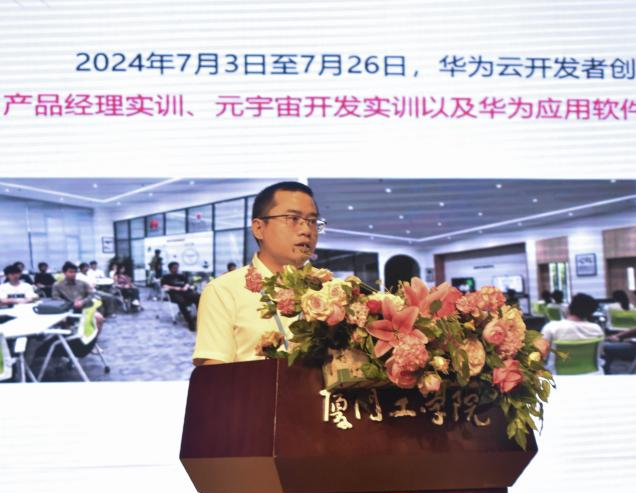 数据科学与计算机学院院长王加贤教授率先发表了热情洋溢的致辞。王院长向新生们介绍,厦门工学院虽年轻,但在师资队伍建设、学科与专业发展、教育教学改革等方面成果显著。学院的五个专业紧密结合人工智能和大数据技术,与国家 “十四五” 规划重点发展行业相契合,拥有广阔的发展前景。同时,数计学院师资力量雄厚,实验条件完备,为学生的成长提供坚实保障。