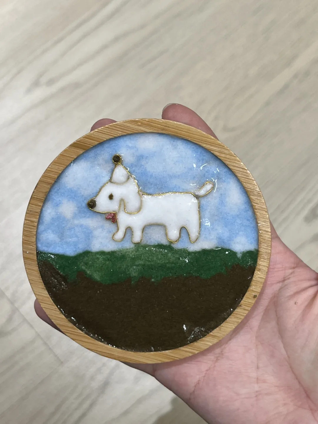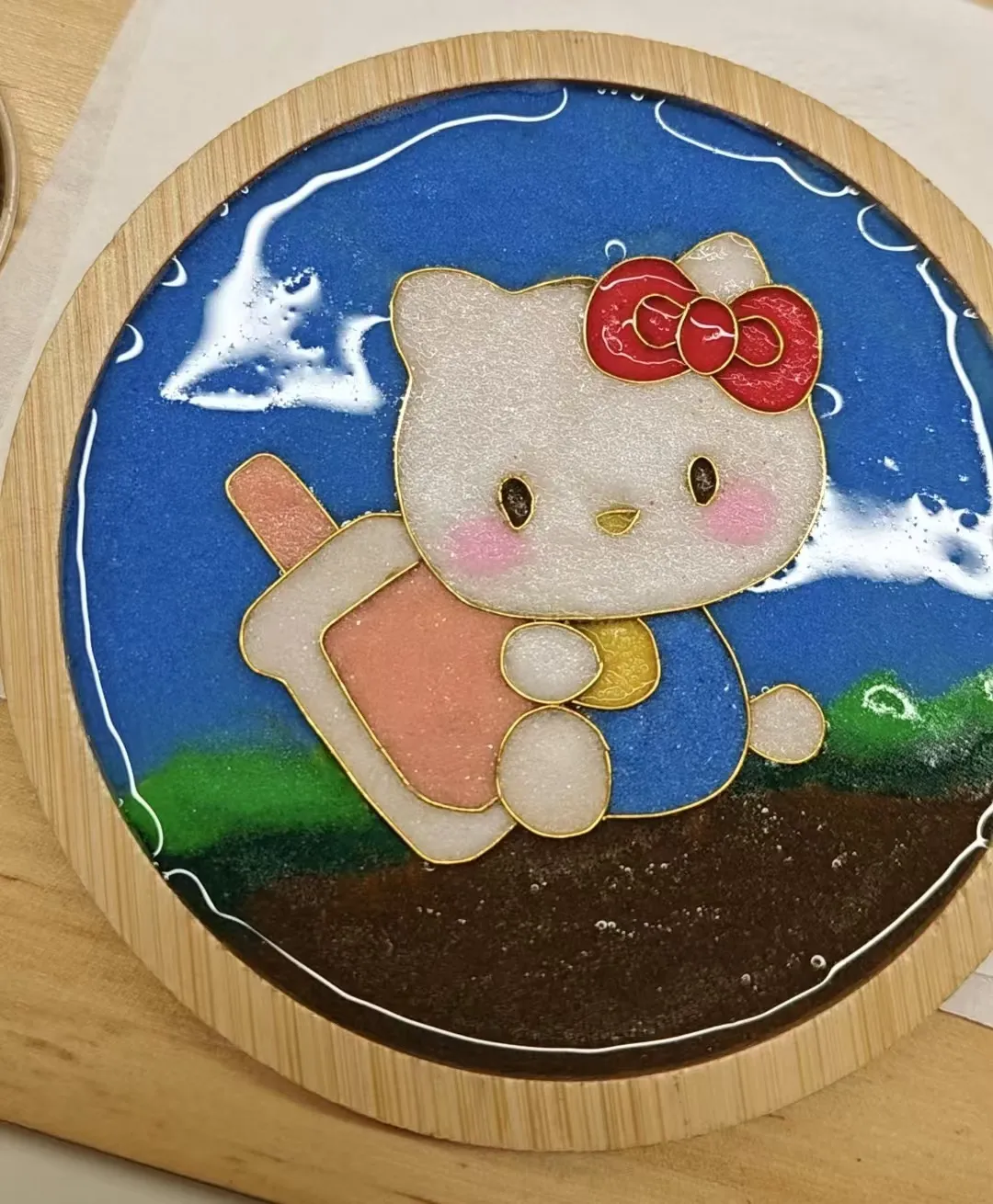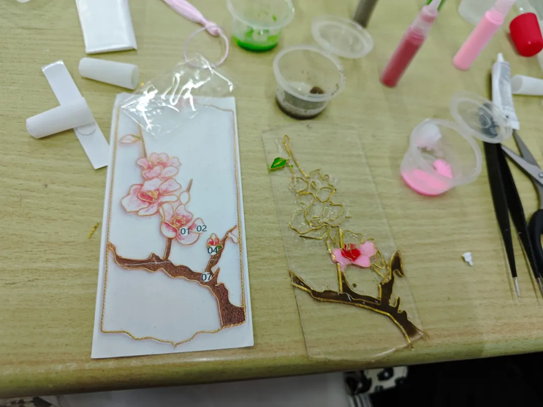 在作品形式方面,除了常规的平面画幅作品,也有各种文创作品,如镜子、书签、发卡、杯子等,同学们在实践中绽放想象之花,将艺术和现实相结合,创作出属于自己的“掐丝珐琅画”。