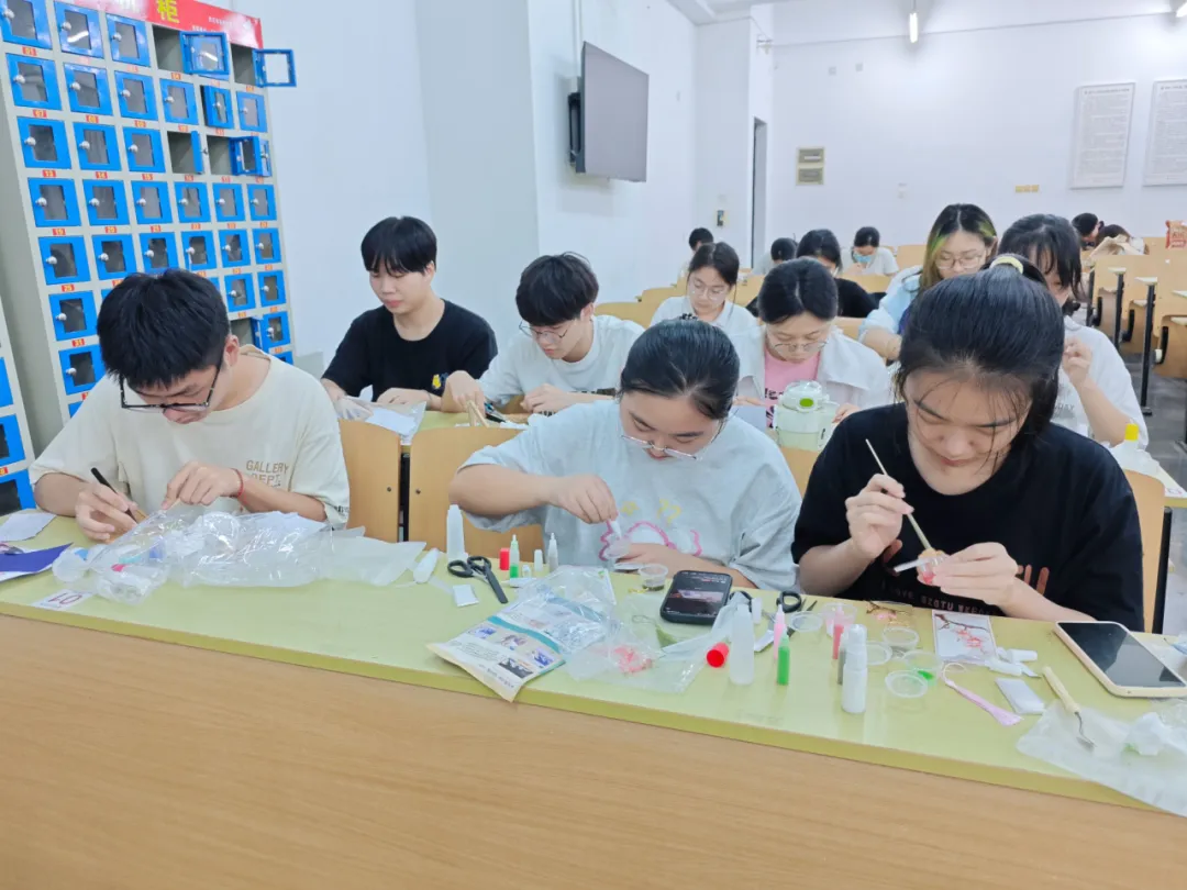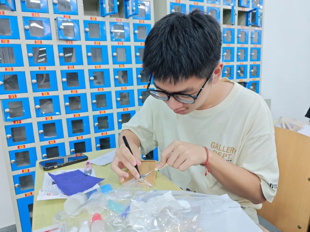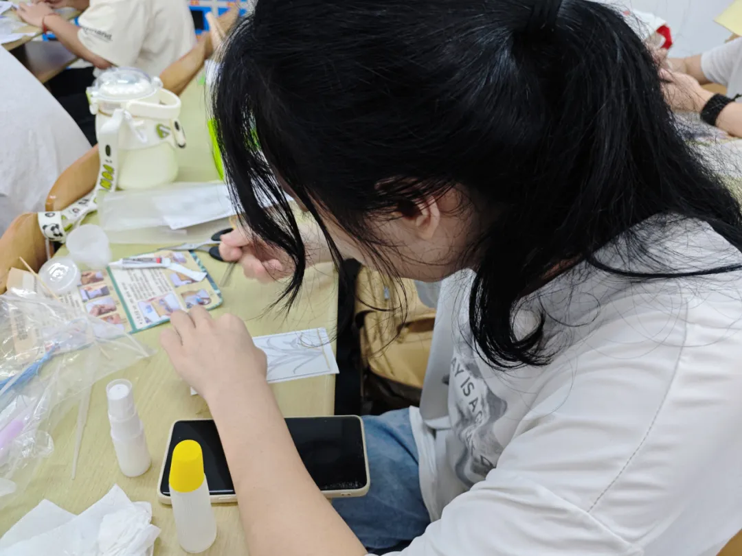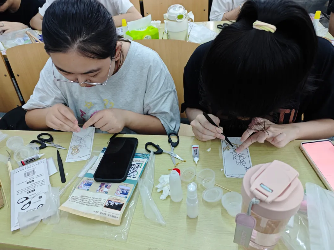 活动现场,友爱书院学委会精心布置了活动场地,准备了充足的材料和工具。同学们小心翼翼地拿起铜丝,通过掐、掰、弯、折叠、卷翻等技巧,用巧手镶出了独一无二的花纹。那一根根纤细的铜丝,在同学们稚嫩却又专注的手中,逐渐勾勒成精美的图案轮廓。