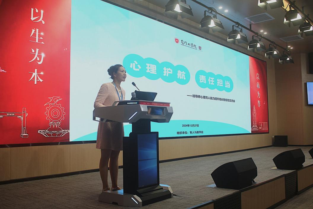 12月27日星期五下午,一场由育人与教学处组织,以“心理护航·责任担当”为题的班导师心理育人能力提升培训暨经验交流会在本校立林学术报告厅召开。本次交流会由育人与教学处郭新巧老师主持,特别邀请心理教育与咨询中心主任蔡丽煌副教授,同时她也是一名班级导师,作为此次讲座的主讲嘉宾。