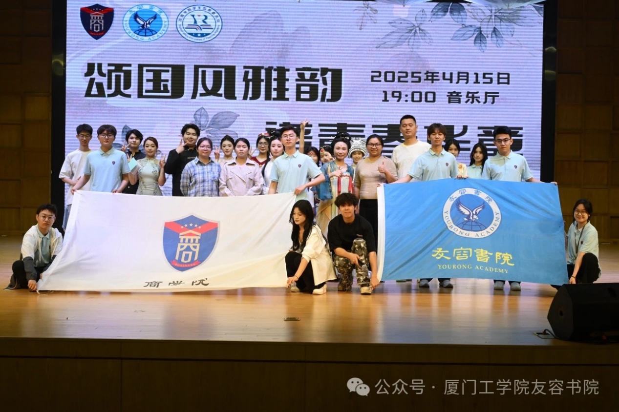 4月18日晚,厦门工学院商学院“颂国风雅韵·谱青春华章”国风主题晚会在明德堂华彩绽放。本次活动由友容书院艺术团匠心打造,通过沉浸式传统文化展演,引领师生共赴一场穿越千年的美学之旅。