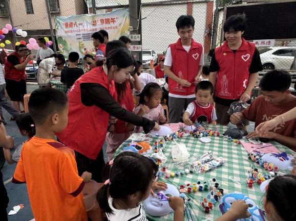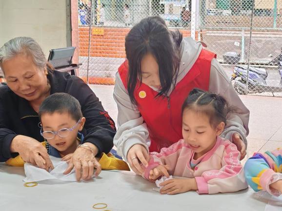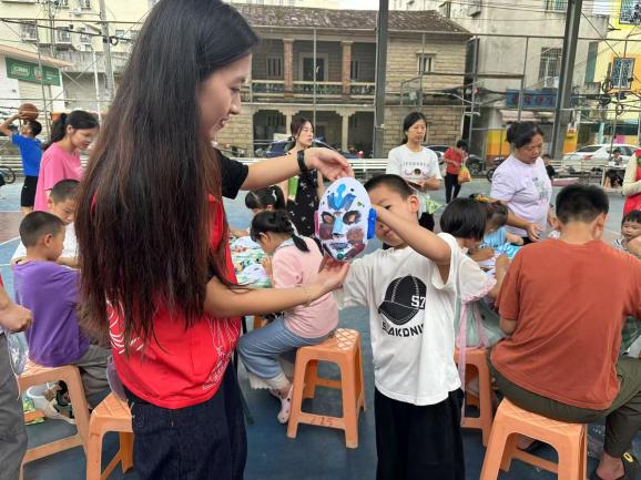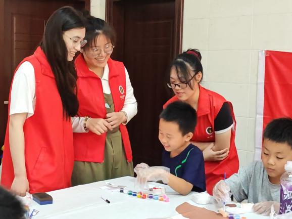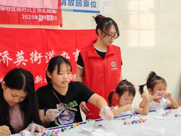 外国语学院党总支立足学科优势,将语言教学融入文化传承,以“党建+志愿服务”为抓手,组织师生党员及学生志愿者深入社区。自2025年3月起,外国语学院友爱书院学生党支部先后开展四期志愿服务活动,围绕扎染、香囊制作、生肖绘画、京剧脸谱等传统技艺,设计“双语课堂+手工实践”的互动环节,让小朋友在趣味体验中学习英语表达,感受中国传统文化魅力。