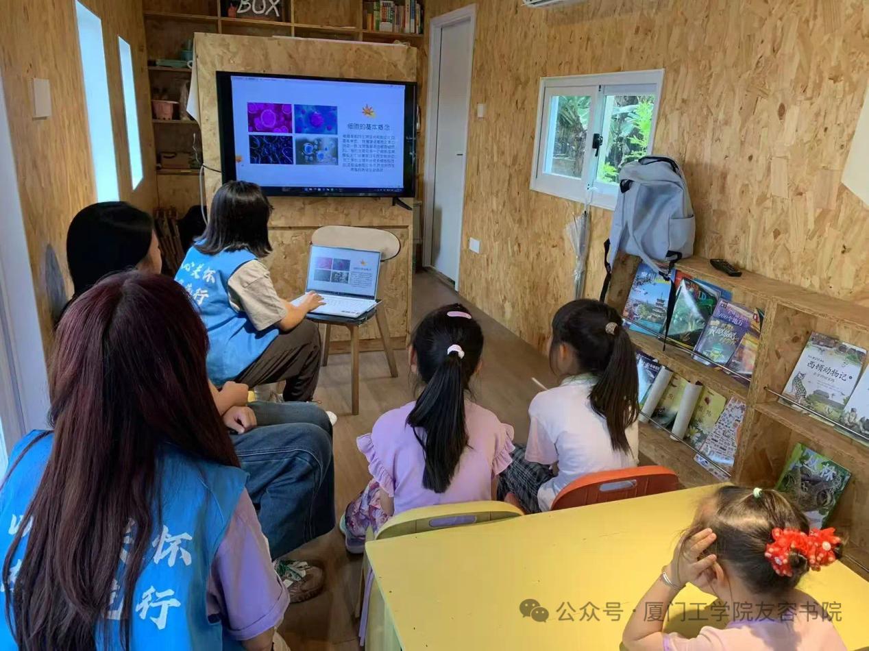 5月27日,厦门工学院友容书院组织部于港头萤火虫公益图书馆成功举办“细胞解码·微观寻趣”主题科普活动。本次活动以微观生命科学为切入点,通过沉浸式体验激发青少年科学探索兴趣。