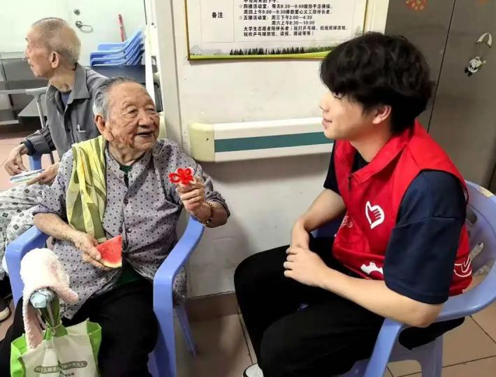 在本次养老院志愿服务中,志愿者们用真诚的陪伴,为老人们带来欢声笑语与贴心关怀。活动现场,充满欢笑与温情 。志愿者们在服务过程中,不仅将“奉献、友爱、互助、进步”的精神融入每一个行动,更深刻感悟到关爱老年群体的重要意义,明白传承尊老敬老美德、践行社会责任,正是新时代青年义不容辞的使命。
