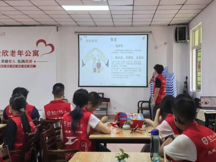 活动伊始,工作人员围绕老年服务规范、沟通技巧及注意事项,为志愿者开展系统培训,夯实服务基础,确保活动安全有序。培训结束后,志愿者分为两组,一部分和长者们一起做手工;另一部分陪伴长者们做游戏和分享生活趣事。