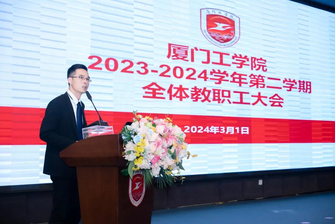 3月1日下午,厦门工学院召开2023-2024学年第二学期全体教职工大会,吹响了高阶教学改革的冲锋号。李德文董事长,党委朱瑞元书记,李雄虎副董事长、执行校长,苏涵常务副校长,李咏梅副校长,李文副校长及全体教职工参加会议。李文副校长主持会议。