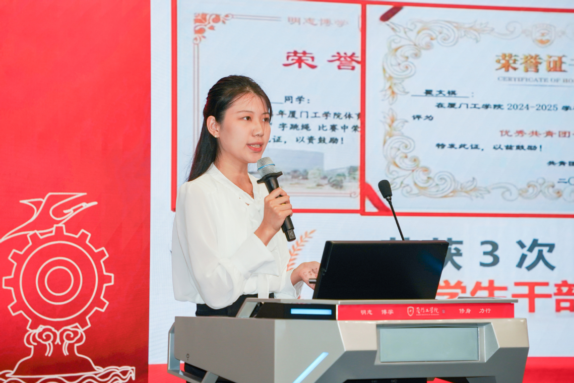 答辩环节中,29位候选人以PPT为载体,将个人成长故事娓娓道来。从名列前茅的学业成绩到深耕科研的创新突破,从斩获佳绩的学科竞赛到扎根基层的社会实践,每一个亮眼成果背后,都是新时代青年“敢闯敢拼、善学善思”的生动写照,精彩汇报引得现场掌声不断。