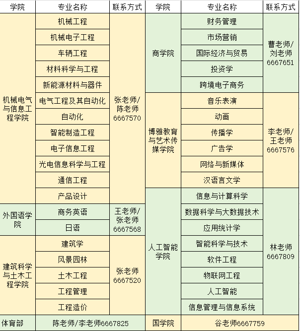 6.往届生参加重新学习优先采用网上报名的方式。个别课程无法网上操作的,如专业选修课等,可以联系各学院教学助理协调办理重新学习报名手续(联系电话见下表)。