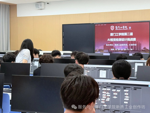 2025年10月12日9:00-11:00,厦门工学院第二届AI视觉检测设计挑战赛校赛在厚德大厦5楼机房顺利收官。本次赛事由新质工业创作坊与AI创作坊联合承办,以工业场景技术实践为核心,吸引全校各年级各专业学子踊跃参与,充分展现了我校学生的创新能力与实践风采。