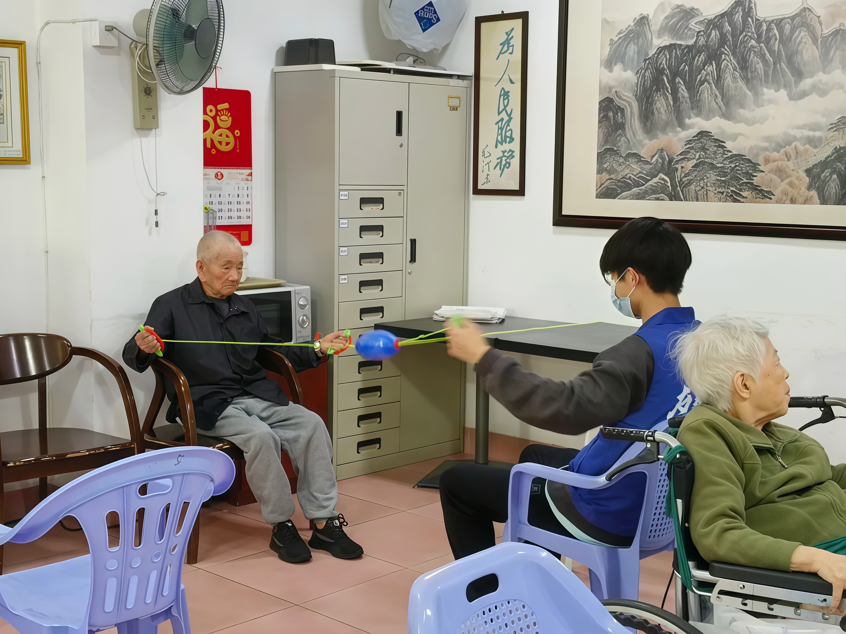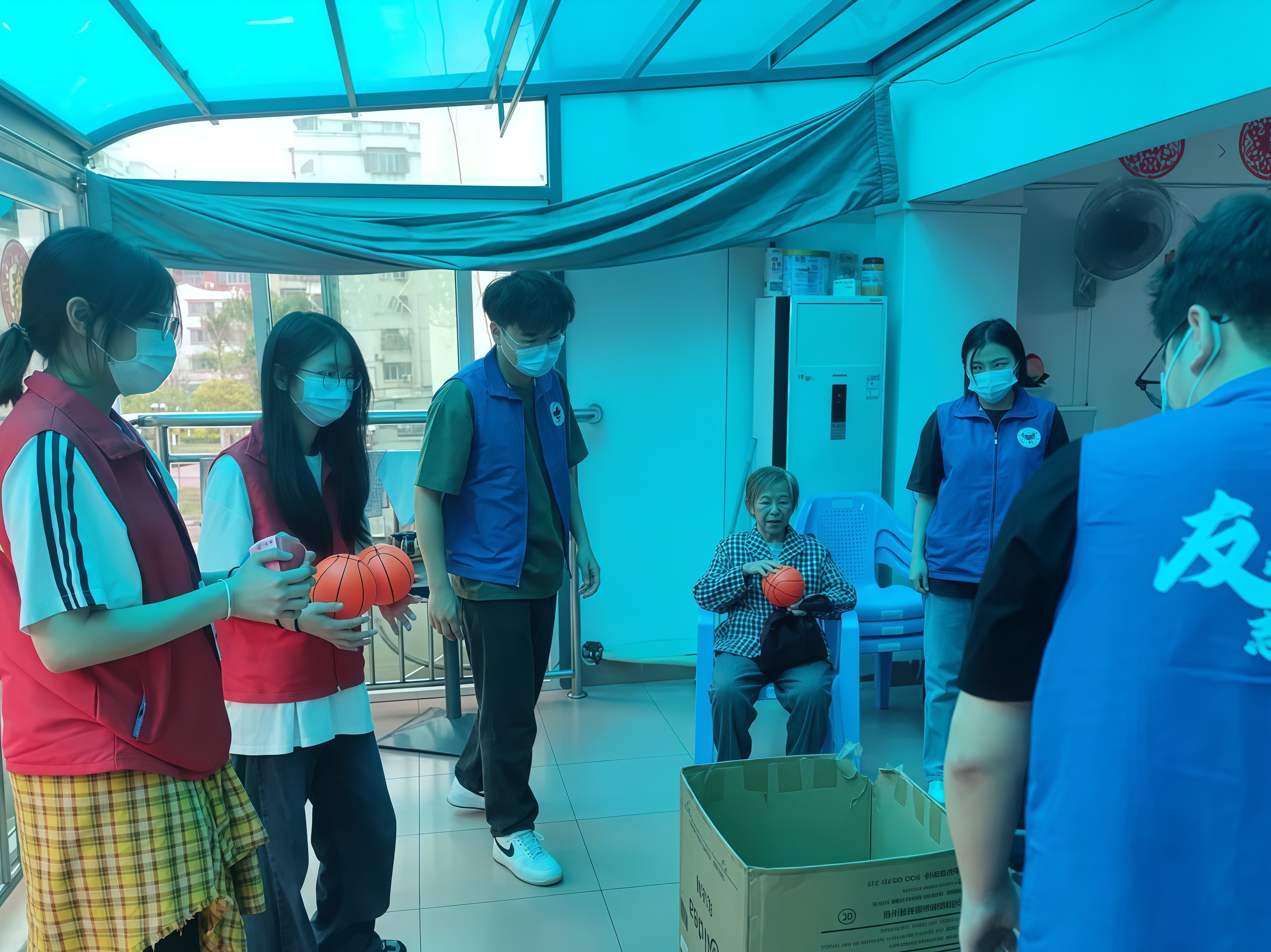 通过投球游戏,长者们可以锻炼手脚协调能力和肌肉力量,提高他们的身体灵活性和反应速度。志愿者将球交在长者们手中,让长者们把球投入箱子内。一次次的尝试让老者们找到诀窍、体验快乐。此外,游戏还能为长者们提供一个社交平台,让他们在参与活动的过程中分享生活经验和乐趣。