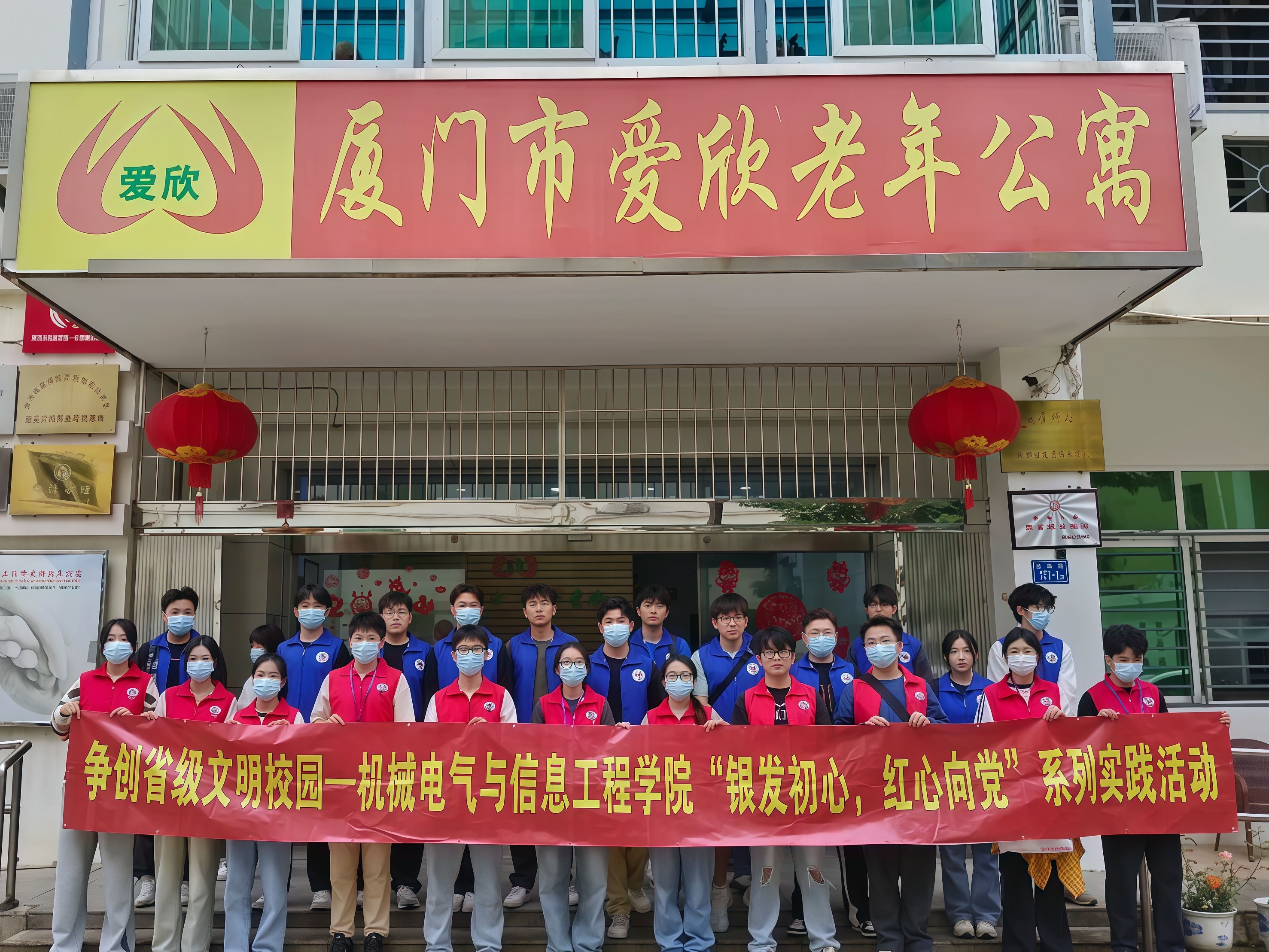 2024年3月31日12:50于厦门工学院三号门,友恭学委会实践部组织志愿者前往爱欣老年公寓,开展本学期“银发初心,红心向党”敬老主题系列实践活动第一期。