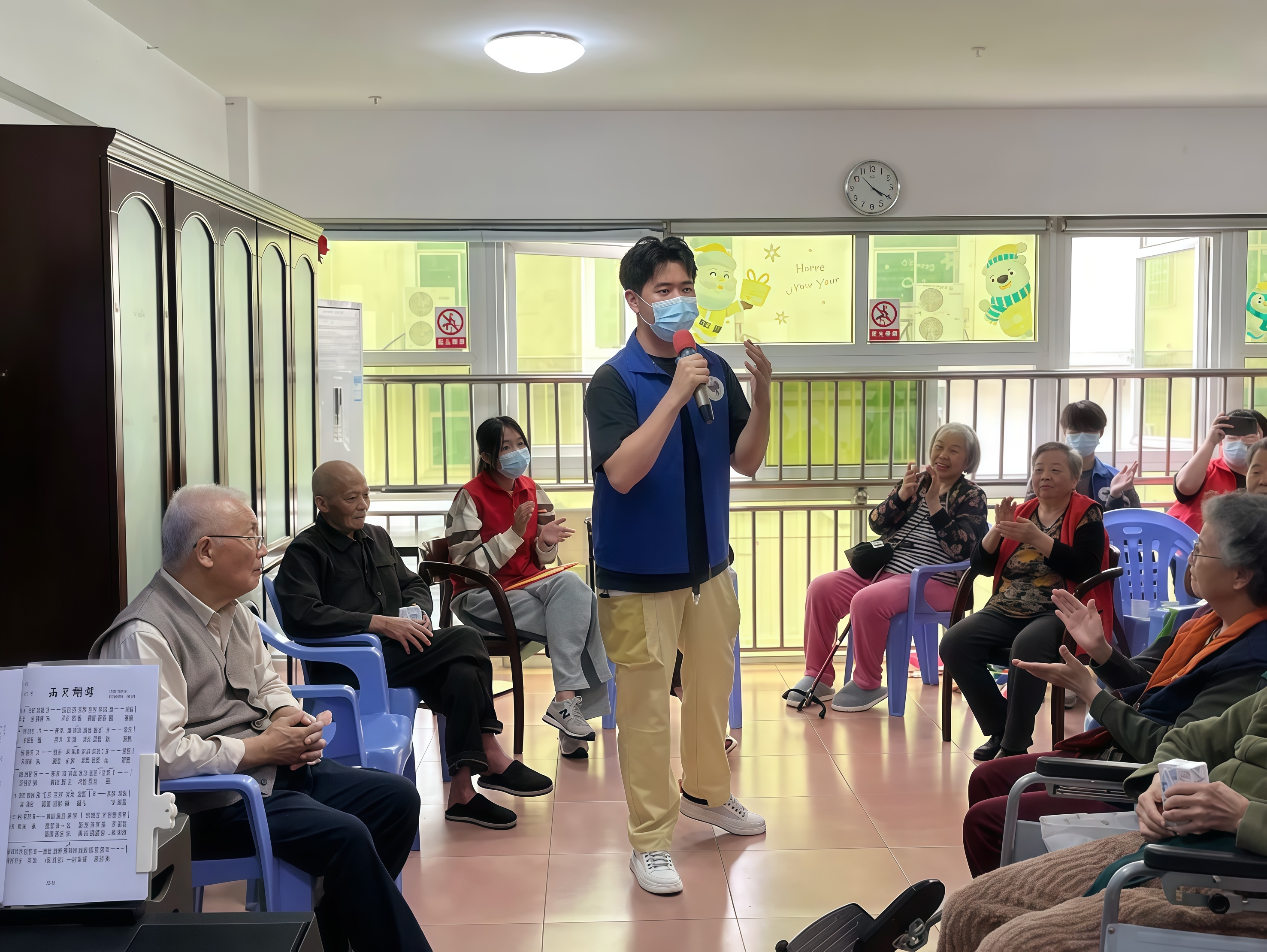 这些歌曲不仅唤起了长者们对往日岁月的怀念,也让我们年轻的志愿者更加深刻地体会到祖国的伟大和繁荣的重要意义。在歌声中,我们共同感受着祖国的强大和充满活力的未来,这种共鸣跨越了年龄的差距,连接起了我们每一个人的心灵。通过这样的活动,我们不仅为长者们带去了欢乐,也让我们内心对祖国的热爱更加深刻,并坚定了自己努力奋斗,为祖国繁荣昌盛贡献力量的信念。