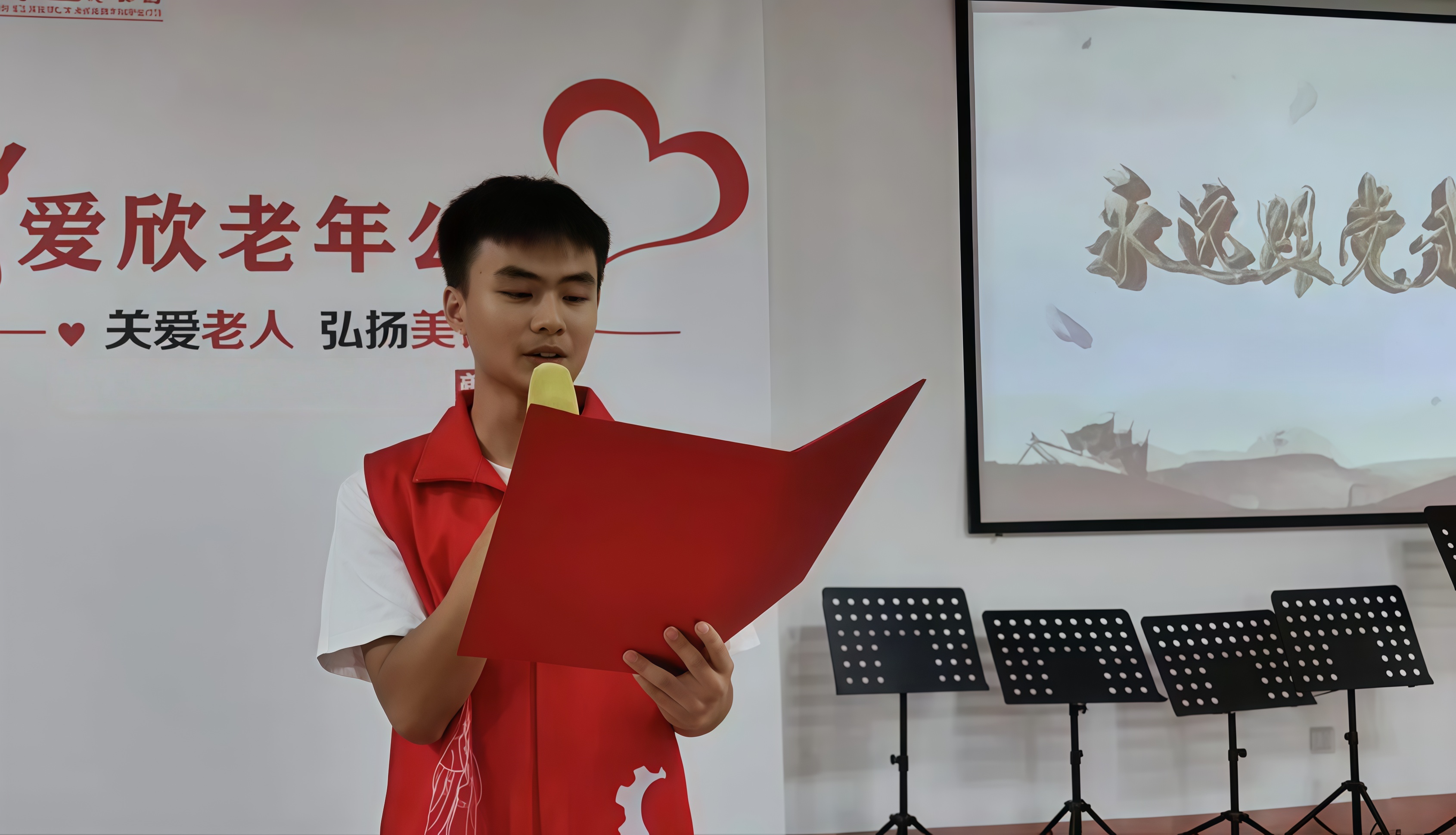 本次活动,志愿者们怀着一颗诚挚的心,带着为长者们精心准备的节目来到爱欣老年公寓。首先,由陈泓睿同学为志愿者们进行志愿者培训。随后,在社工的指导下,我们将志愿者们分成两部分,一部分为长者表演节目,另一部分则陪伴长者到户外聊天。