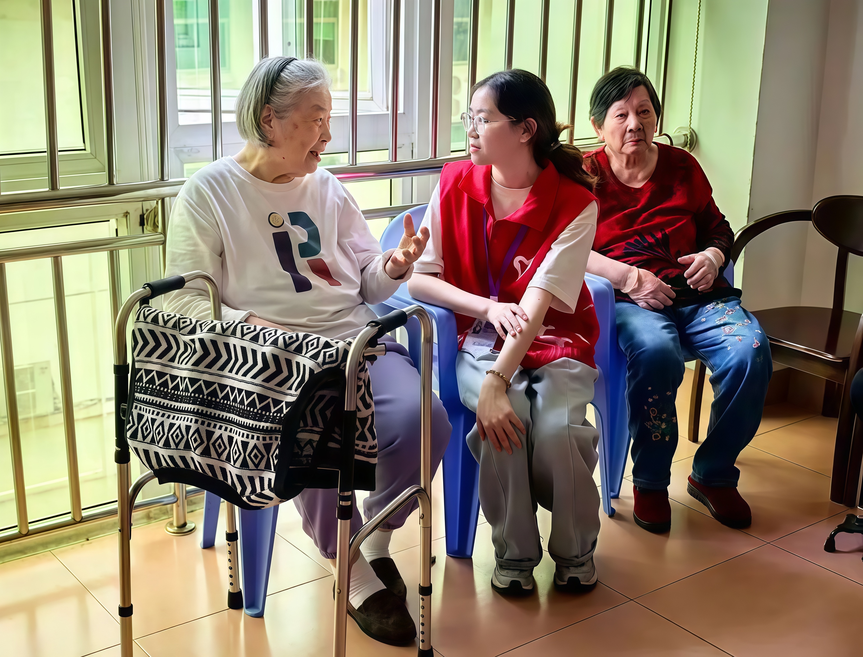 雨生百谷,万物繁盛。窗外细雨纷纷,志愿者与长者们在屋内促膝长谈,笑声连连,长者们兴致勃勃地与志愿者分享着自己窖藏半生的往事。