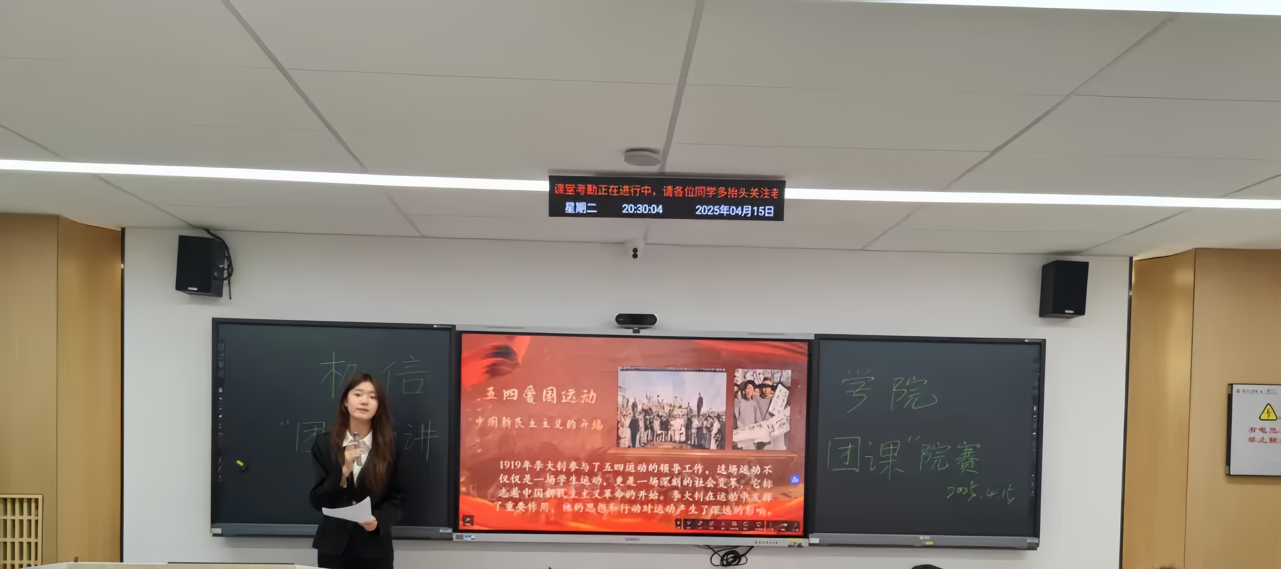 24 级通信 2 班团支书周琳晓以 “传承红色基因,闪耀青春光芒” 为主题展开分享。她讲述了李大钊在五四爱国运动中的关键作用,其思想和行动推动了中国新民主主义革命的进程。李大钊子女也纷纷继承父亲遗志,在不同领域为国家贡献力量。周琳晓借此激励新时代青年听党话、跟党走,以实现中华民族伟大复兴为己任,增强志气、骨气、底气,不负时代与人民的期望 。