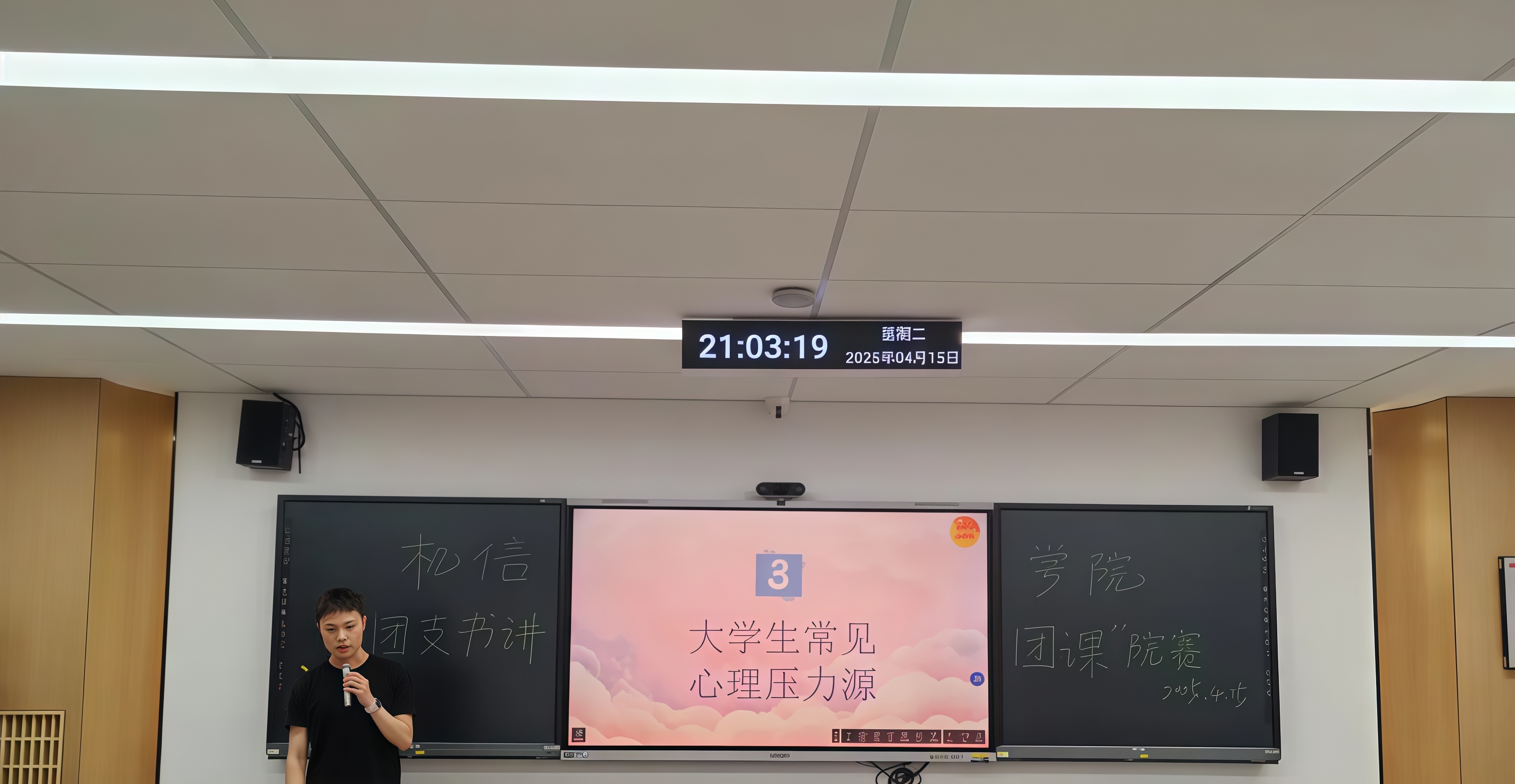 23通信2班团支书吴攀龙在汇报中指出,超 20% 大学生存在抑郁风险,40% 可能有焦虑风险。心理健康对大学生意义重大,关乎学习、社交等方面。学业、人际关系等是常见压力源。吴攀龙建议,大学生可通过增强自我认知、运动减压等方式应对,还可利用学校心理咨询室等资源。同时,他呼吁大家主动进行心理自检,养成健康生活习惯,学习心理知识,守护自己与他人的心理健康。