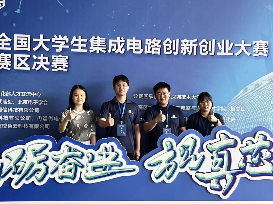 “覃老师全程陪伴、悉心辅导,带我们出校比赛时事事亲力亲为,还能冷静应对突发情况。”21电子2班吴煌荣说。2024年,覃杰莉与程梦璋老师共同指导学生,备战设计难度大、资料稀缺的A类赛事——第八届全国大学生集成电路创新创业大赛,最终我校3名学生晋级华南赛区比赛。经过紧张的暑期留校备赛,团队准备赴深圳参赛时出现突发情况。覃杰莉作为带队老师,冷静沉着处理问题,最终获得华南赛区三等奖,实现专业方向赛事零的突破。“生活中很多事情都不会一帆风顺,认准了就要尽力去做。”覃杰莉说,她用实际行动向学生传递了“不惧挑战、勇往直前”的信念。