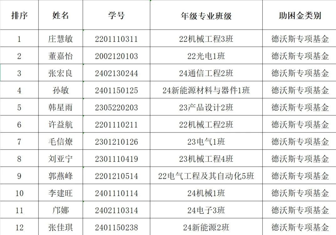 经学生本人申报、院务委员会评选推荐,拟推荐庄慧敏等12名同学参评德沃斯专项基金,现将具体名单予以公示。