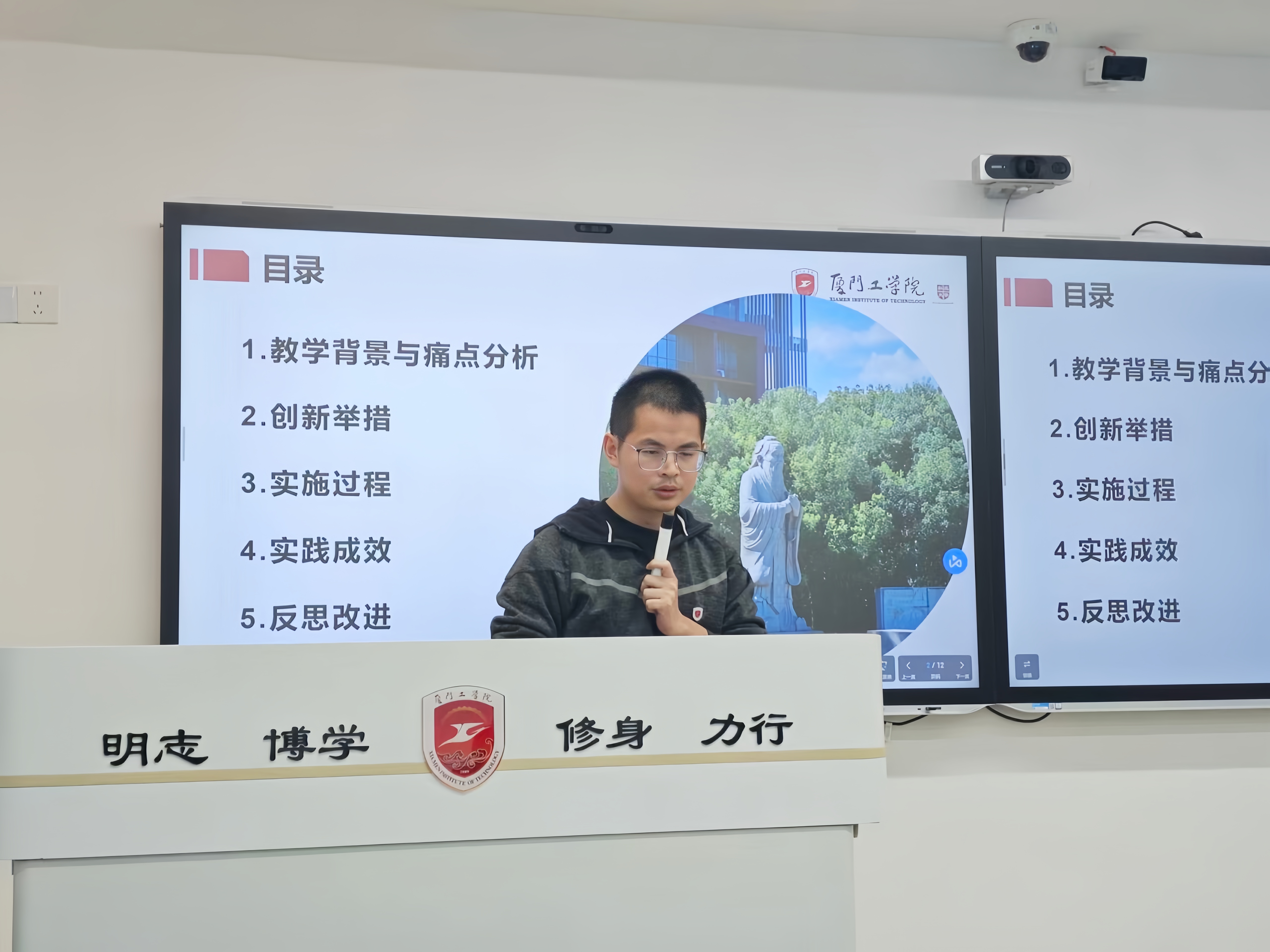 赛事自启动以来,得到全院教师的积极响应,吸引了各教研组8 支队伍、17 名教师踊跃报名参与。赛程分为两个阶段:12 月 25 日至 29 日为材料提交与网络评审阶段,参赛教师按期递交教学创新成果报告等相关材料,评委同步完成线上评审工作;30 日下午的现场汇报环节中,各参赛团队依次登场,借助 PPT 演示,全方位呈现了在课程思政融入、教学模式改革、信息技术应用等领域的创新探索与实践成效。整场汇报亮点纷呈,充分展现了我院教师追求卓越的教学风貌与扎实的专业功底。