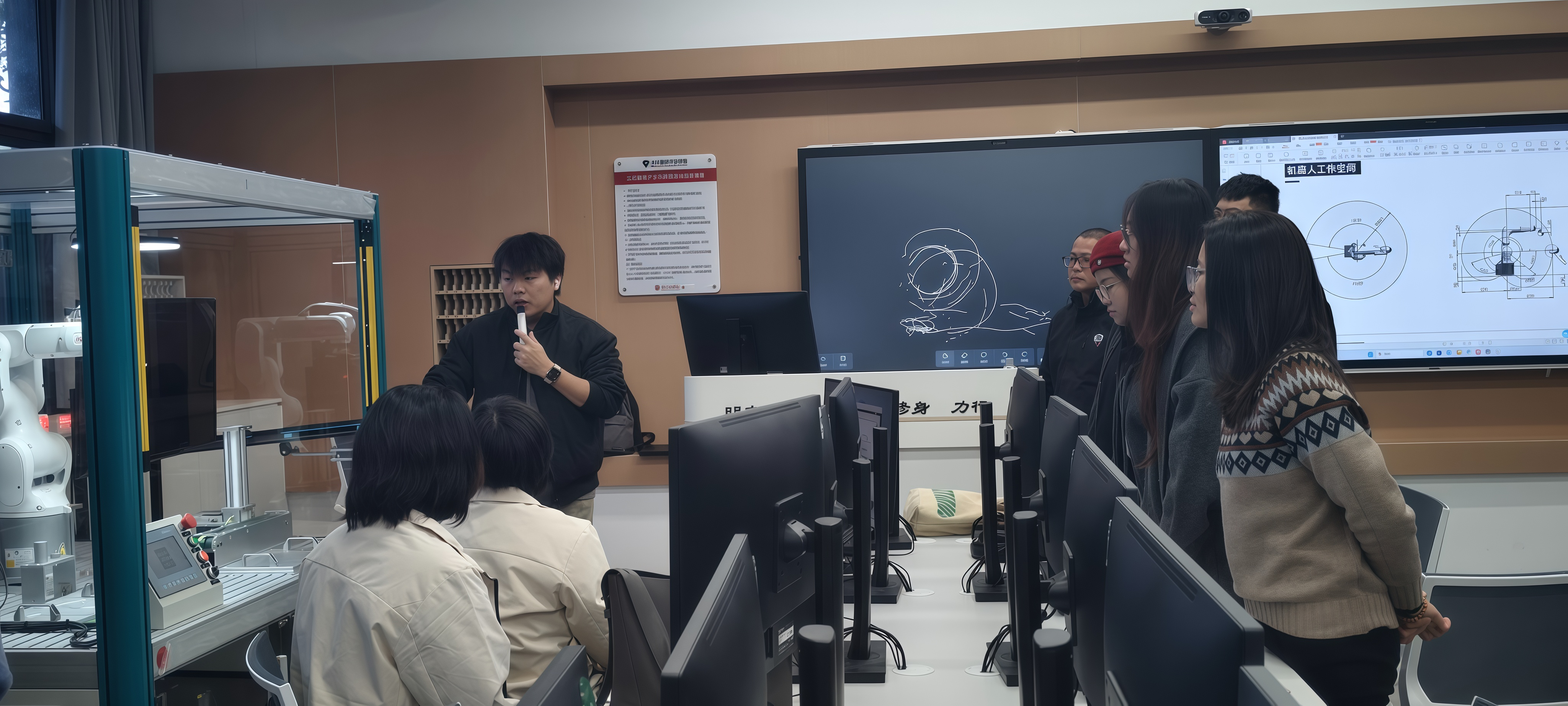 周老师将复杂的生产流程拆解为一个个具体项目,学员们分组协作,从深入调研企业实际生产需求、完成项目策划,到编写符合要求的指令代码、运作实施项目并操控工业机器人完成任务,最后进行成果评估、分析操作中的优点与不足。在这一完整过程中,学员们不仅扎实掌握了工业机器人操作的核心技能,更深刻体会到企业项目运作的全流程逻辑。