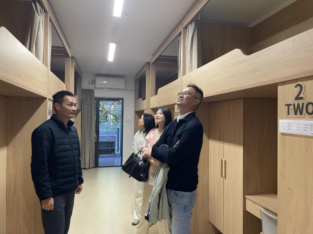 随后,林圣彤副院长陪同考察了学生宿舍。李华斌董事总经理对我校优越的学生住宿条件给予高度评价。