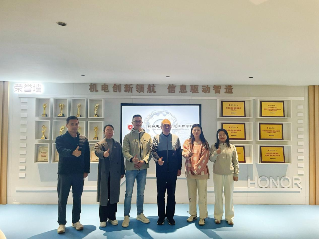 当天下午,机械电气与信息工程学院行政副院长林圣彤首先带领李华斌董事总经理一行参观了工业制造产业学院,重点察看了相关技术展示区、学生工作室、教学场地等设施,并详细介绍了工业制造产业学院的师资队伍建设情况。