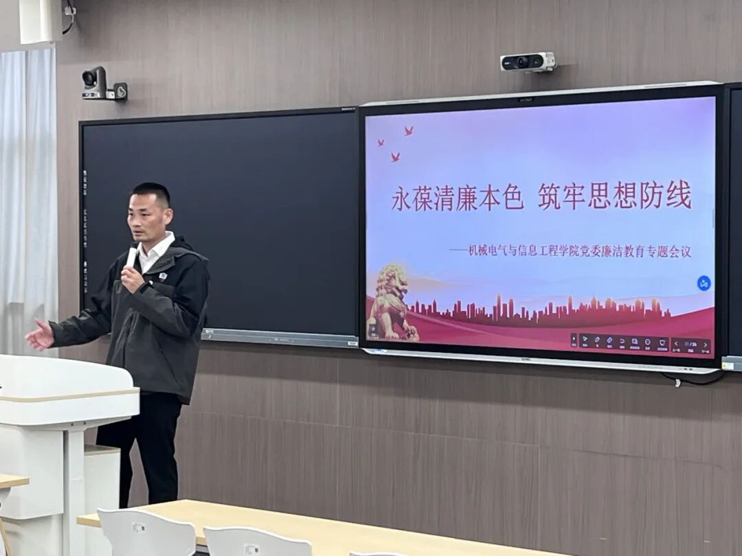 会上,机械电气与信息工程学院党委副书记林圣彤组织全体教师党员开展廉洁教育专题学习。