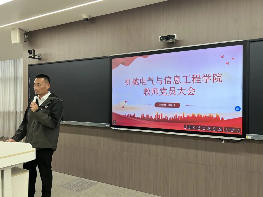 为总结过去一年党建工作成效,明确新一年发展方向,进一步凝聚党员共识、激发组织活力,机械电气与信息工程学院于2026年1月20日召开全体教师党员大会。机械电气与信息工程学院党委副书记林圣彤作工作报告,全体教师党员参加会议。
