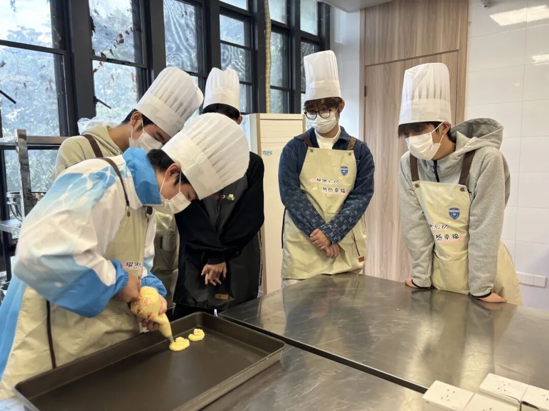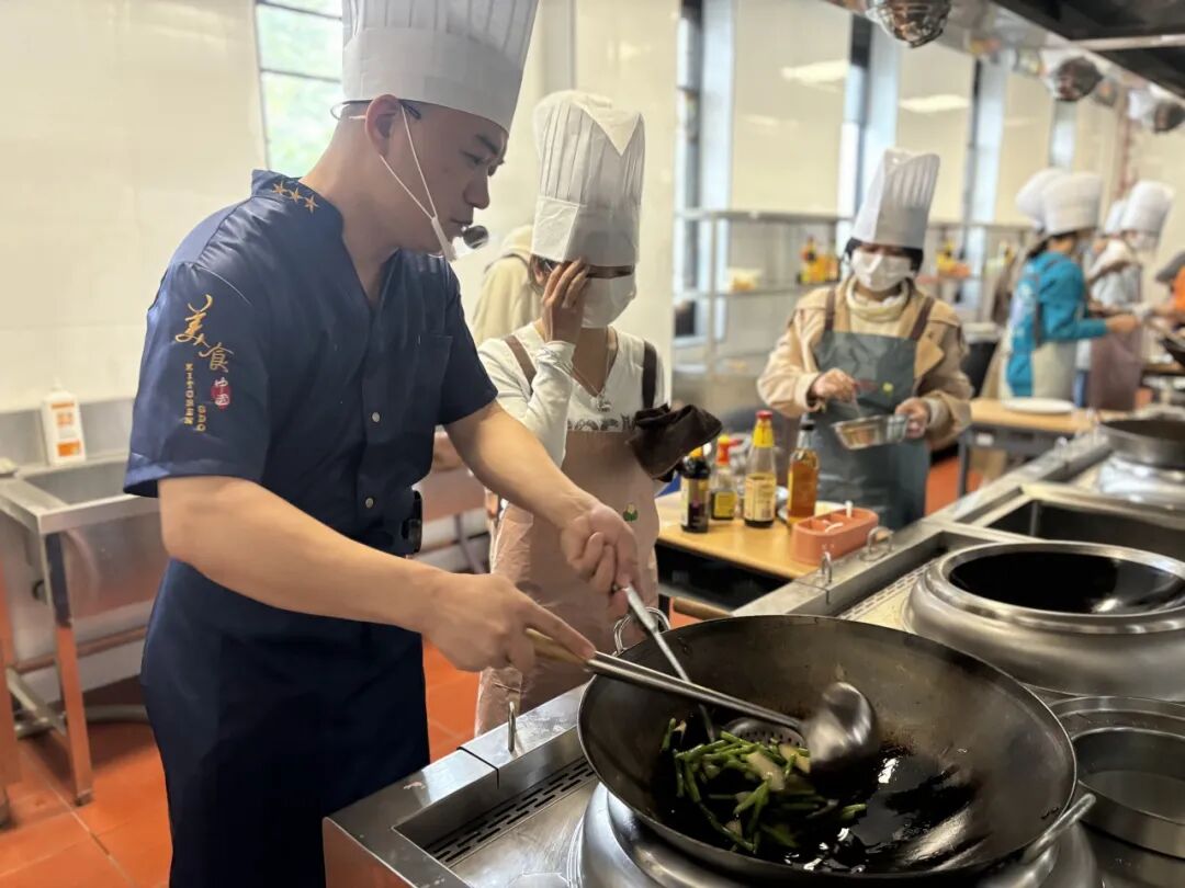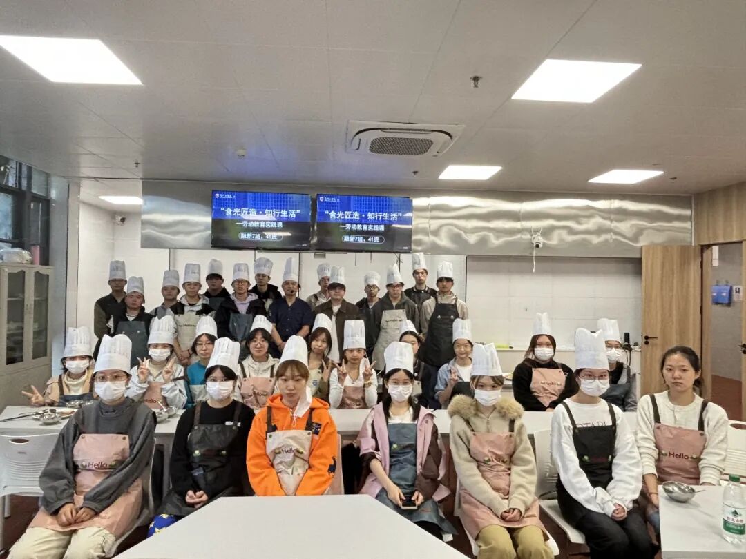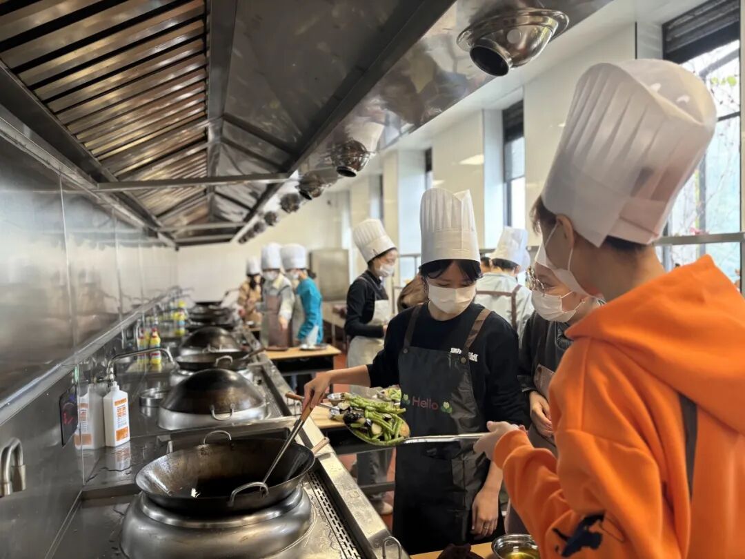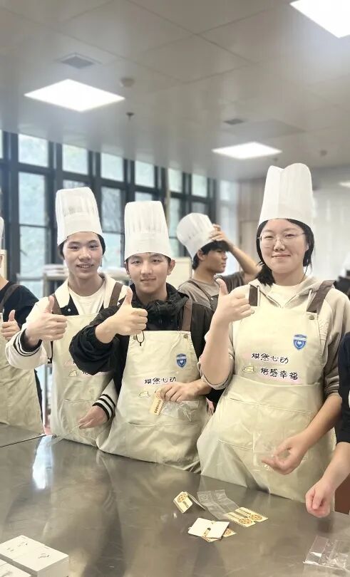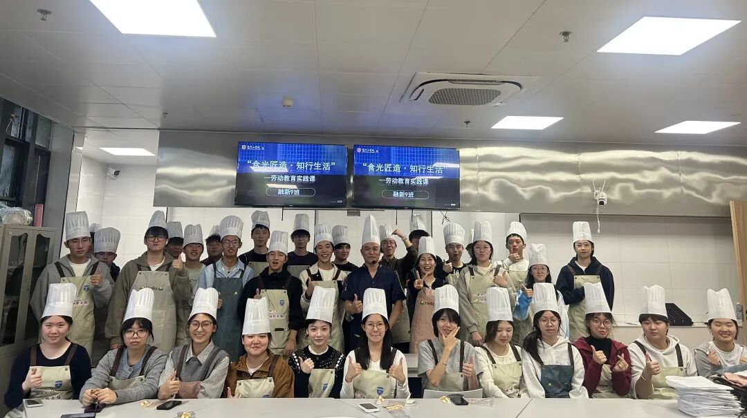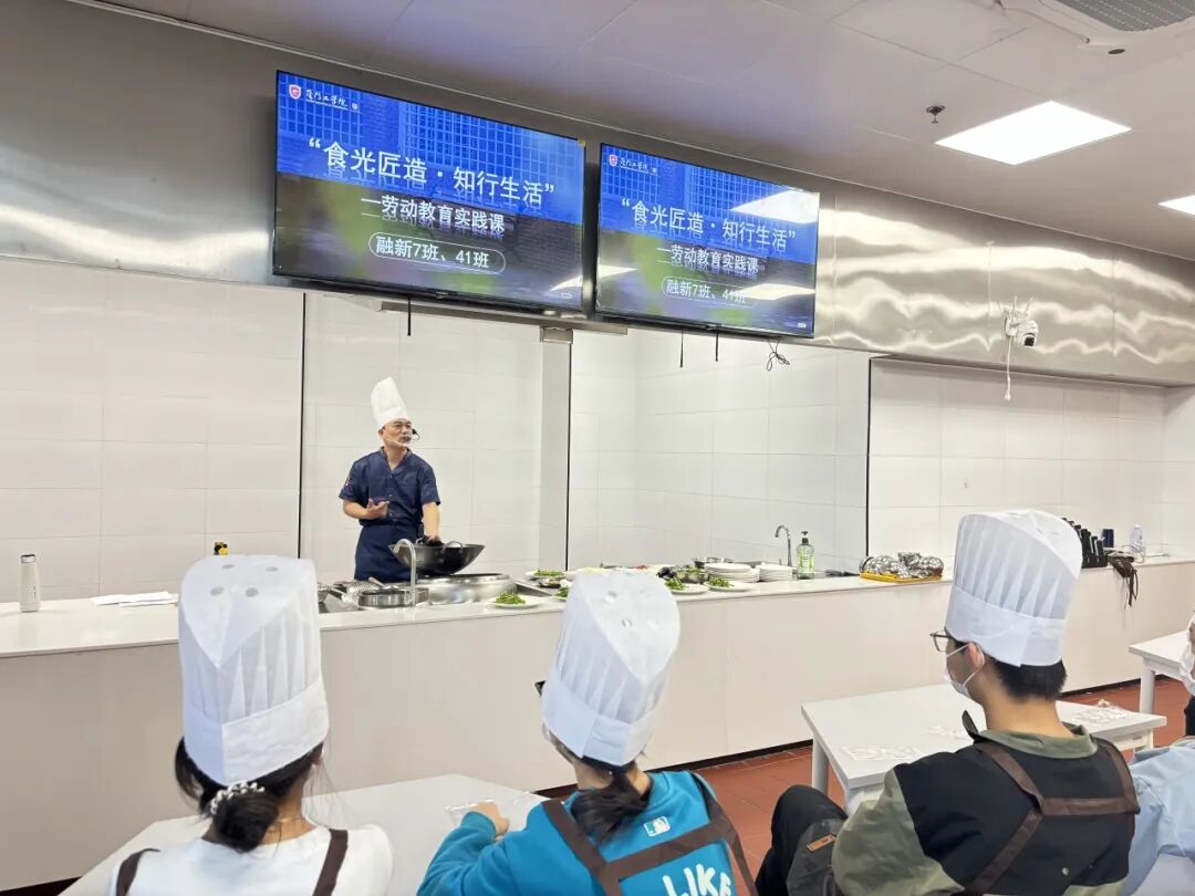 融新学院7班、9班、41班的课堂充满了高效的团队协作氛围。同学们自发形成了“生产线”,从备料到清洗,分工明确,流程清晰,将简单的食材通过团队的力量变成了高效产出的美味。