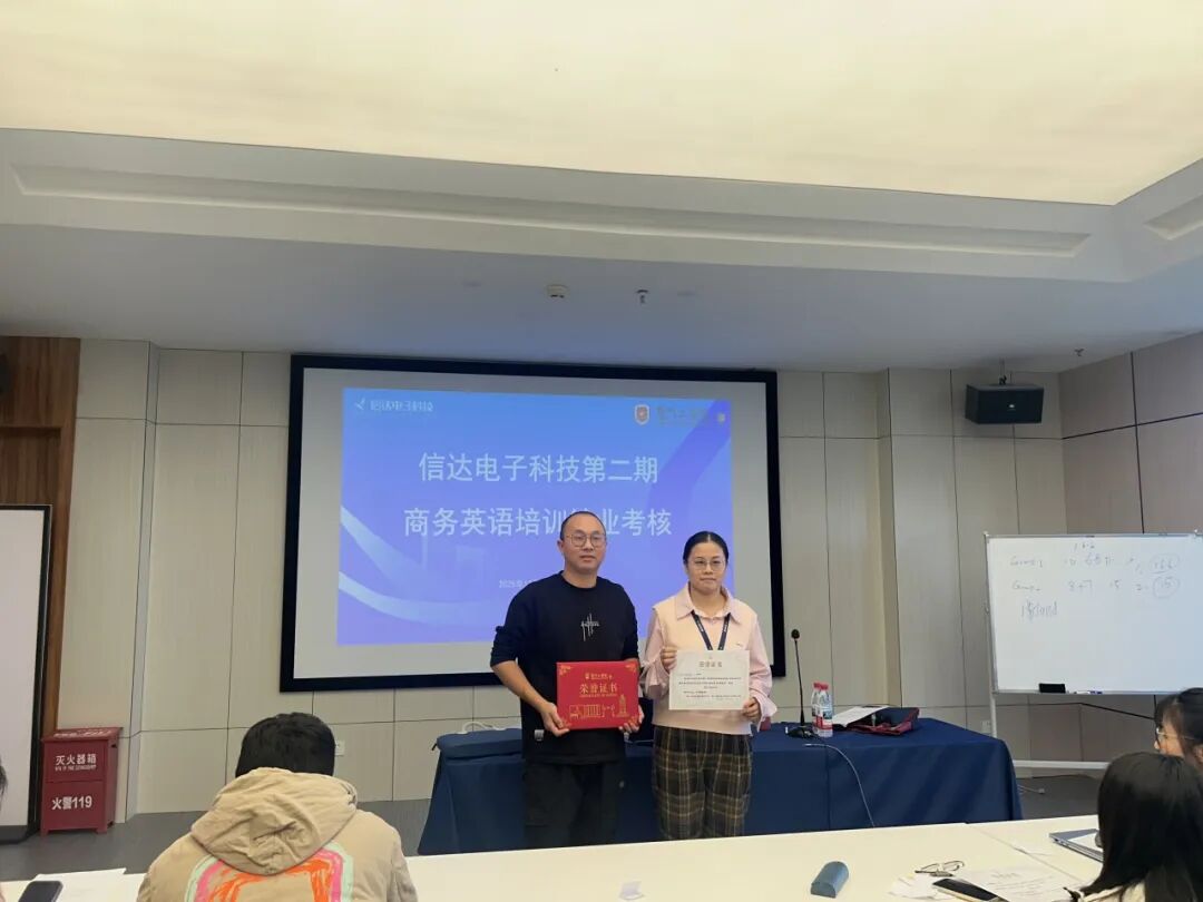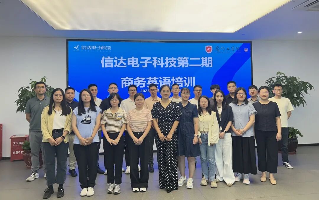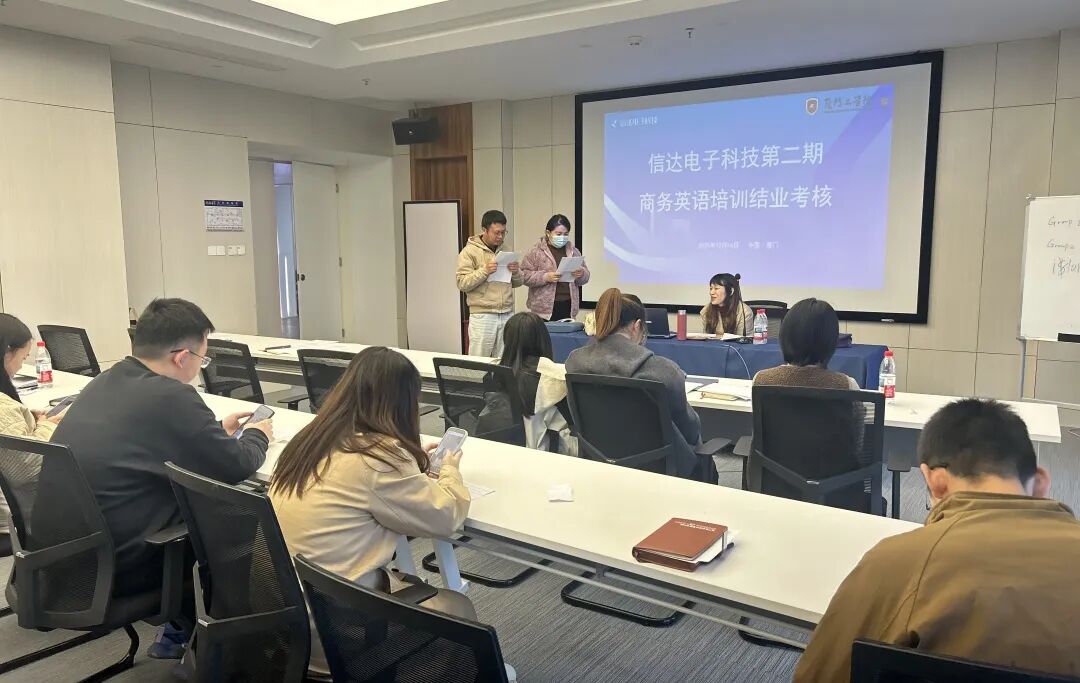 12月16日,厦工教培中心与信达电子科技有限公司联合举办的第二期商务英语定制班顺利结业。在为期半年的沉浸式学习中,学员们通过系统训练与实战演练,在商务沟通与国际交往能力上实现了显著提升,为职业生涯再添重要技能储备。