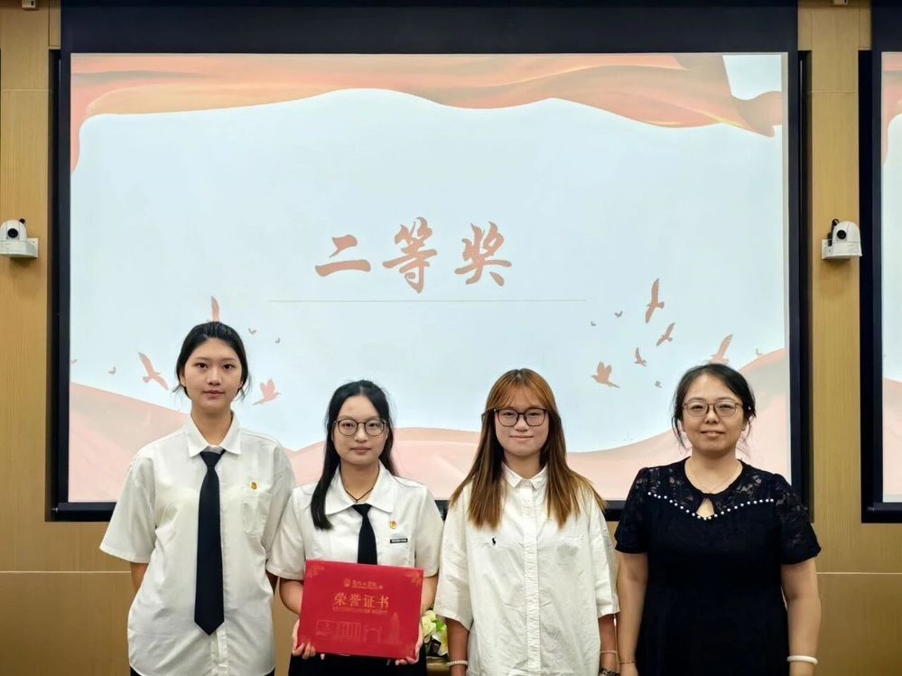 活动在合影留念中圆满落幕。在这次比赛中,选手们紧扣时代主题,结合校园日常与鲜活案例,以“青言青语”将抽象理论转化为生动故事。