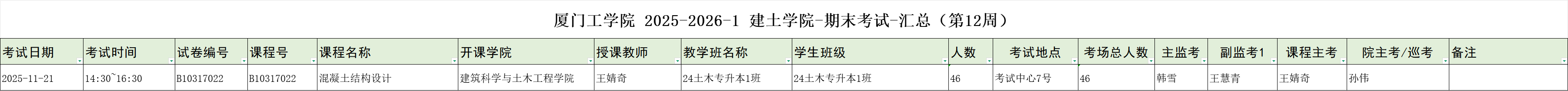 厦门工学院2025-2026-1建土学院-期末考试-汇总(第12周)