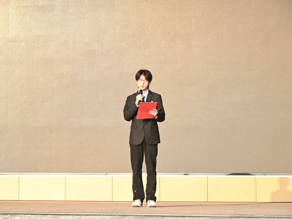 升旗仪式上,22 级建筑学 1 班的郑文聪同学作为学生代表发表国旗下讲话。他围绕 “文明行为养成” 这一核心主题,结合校园日常行为规范,与大家分享感悟:文明不仅是学子综合素质的直观彰显,更与厦门工学院的整体形象紧密相连。他还向全体同学发出真诚倡议,呼吁大家从课堂专注听讲、校园遵守秩序等身边小事做起,将文明理念内化于心、外化于行,携手共同营造和谐美好的校园环境。