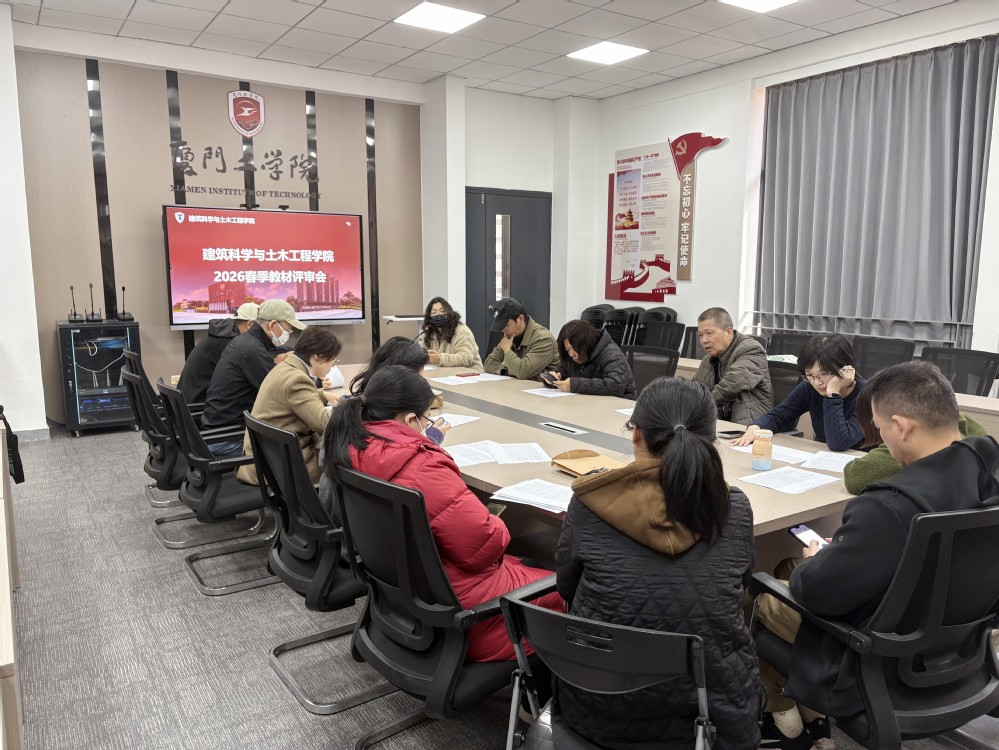 2026年1月9日,建筑科学与土木工程学院组织召开了2026年春季学期教材选用评审会议。会议旨在严格贯彻落实《普通高等学校教材管理办法》《福建省普通高等学校教材管理实施细则》的相关规定以及《厦门工学院教材建设与管理办法》(厦工教〔2021〕23 号)文件关于教材建设与选用的相关政策要求,规范教材管理,保障优质教材进课堂,切实提升人才培养质量。学院领导、教授委员会、课程组主任、课程组副主任等参加了本次评审。