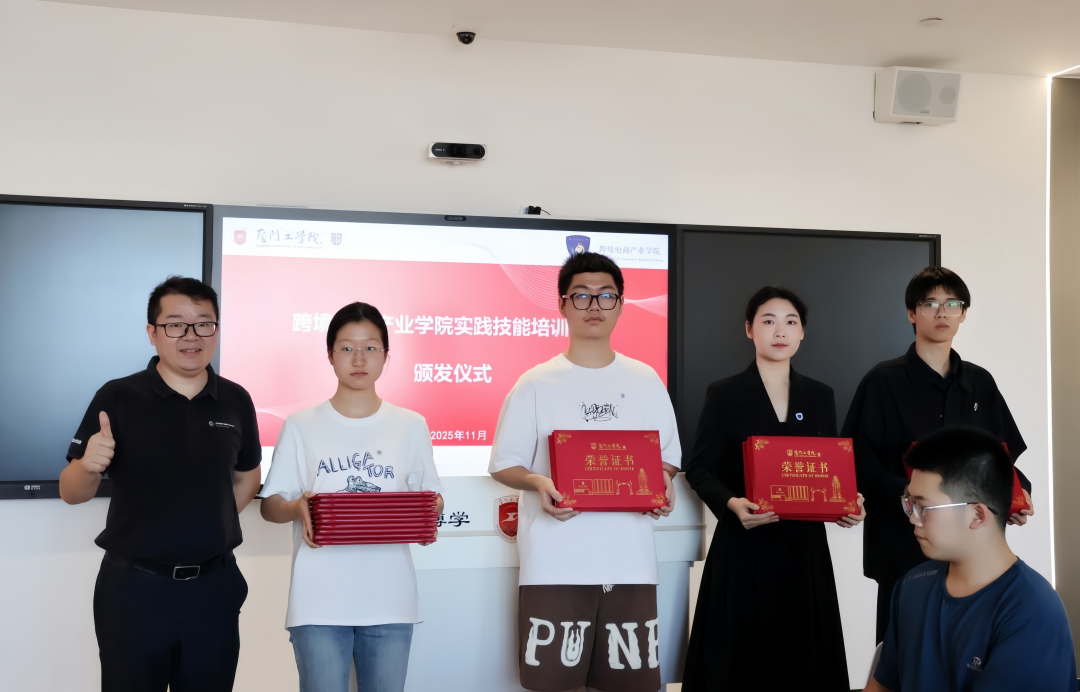 近日,厦门工学院跨境电商产业学院在智能创新坊成功举办实践技能培训证书颁发与明星实习生表彰仪式。本次活动旨在肯定学员在实践项目中的优异表现,激励他们在跨境电商领域持续成长。