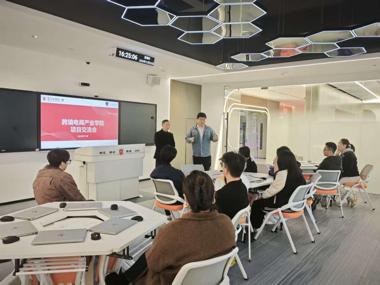 2025年12月25日下午,厦门工学院跨境电商产业学院召开第三次项目交流会。交流会旨在深化产教融合,为学生搭建直面行业、规划未来的沟通平台。出席本次会议的包括跨境电商产业学院、生态集群产业学院、厦门工学院企业发展有限公司代表,企业导师代表和外国语学院教师代表,以及跨境实训项目组成员和对项目感兴趣的同学。
