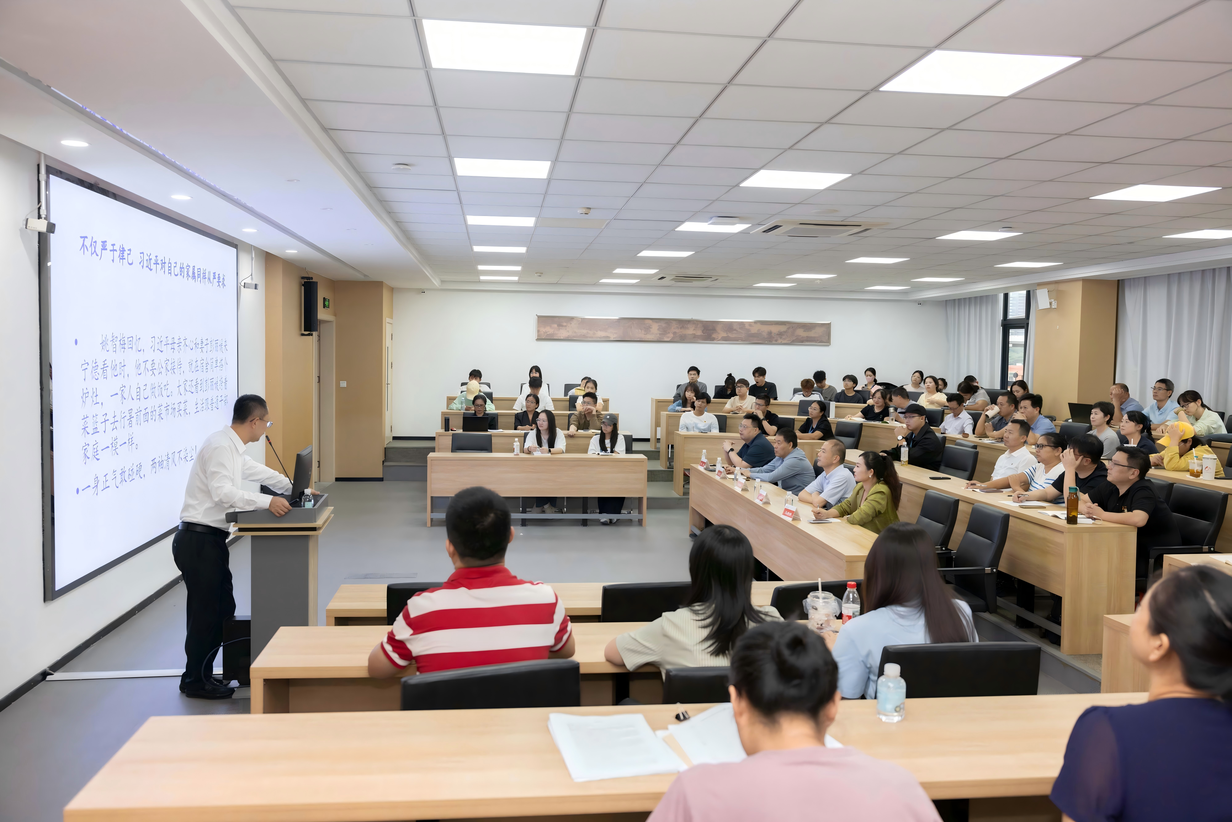 随后,张教授系统梳理了习近平同志在福建17年半的工作历程,以“闽山闽水物华新”为主线,生动再现了一系列极具前瞻性、开创性的实践探索。讲座中,张教授特别结合厦门工学院所在的闽南地区实际,解读了“马上就办、真抓实干”“四下基层”等工作方法的时代价值,指出这些理念不仅是习近平同志在福建工作时的宝贵经验,更对高校人才培养、科研创新、社会服务具有重要指导意义。他鼓励师生以“深学争优、敢为争先、实干争效”的行动自觉,将理论学习成果转化为推动自身成长、服务地方发展的实际能力。