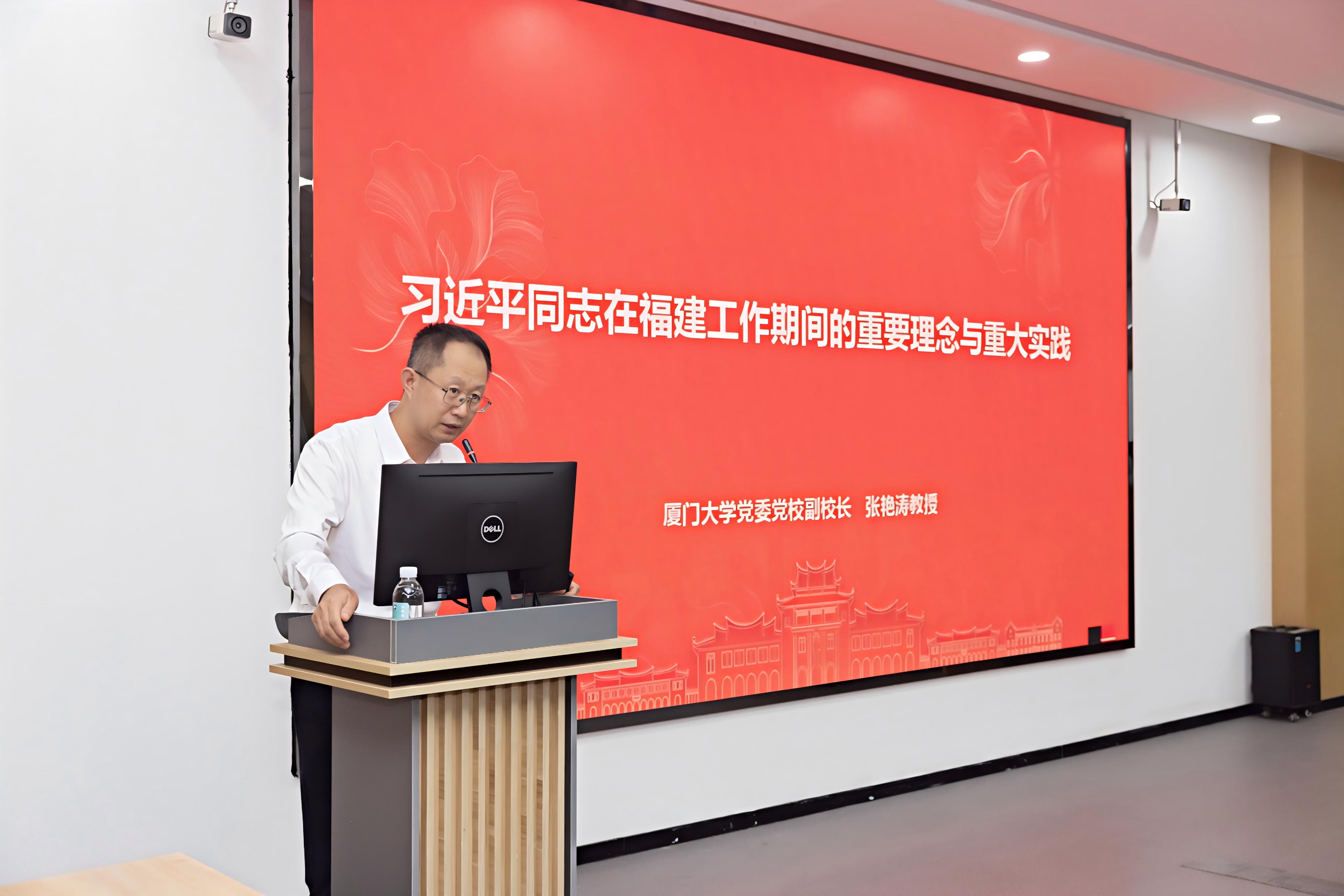 2025年10月31日下午,我校成功举办2025年福建省学习习近平新时代中国特色社会主义思想百场社会科学专题报告会。此次报告会特邀厦门大学党委党校副校长、马克思主义学院张艳涛教授到校开展讲座,讲座主题为“习近平同志在福建工作期间的重要理念与重大实践”。