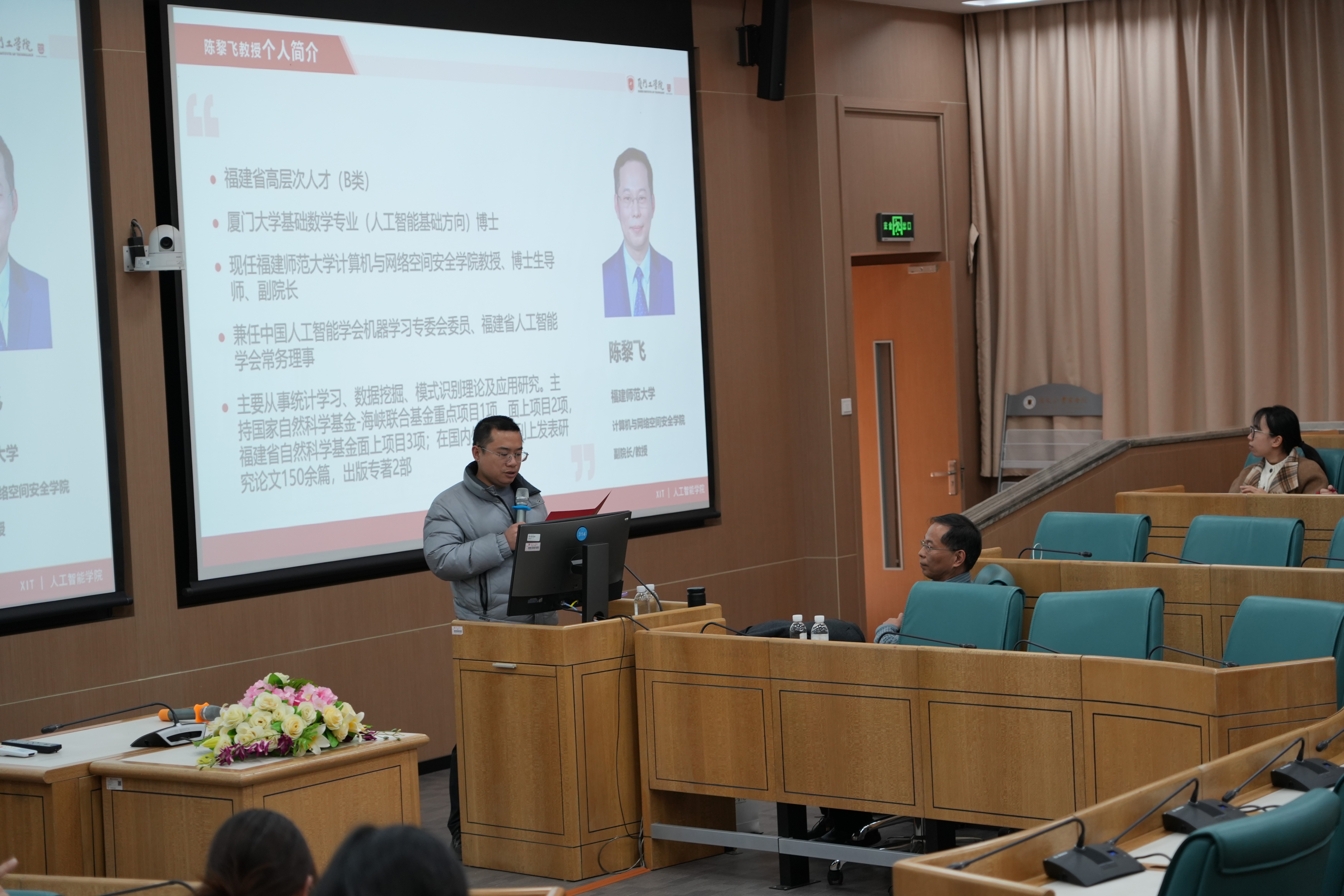 本次讲座由执行院长谢志春主持。谢院长首先对陈黎飞教授的莅临表示热烈欢迎,并向现场师生详细介绍了其学术背景与研究成果。陈教授博士毕业于厦门大学基础数学专业(人工智能基础方向),长期深耕统计学习、数据挖掘、模式识别理论及应用研究领域,学术履历丰富、成果卓著。