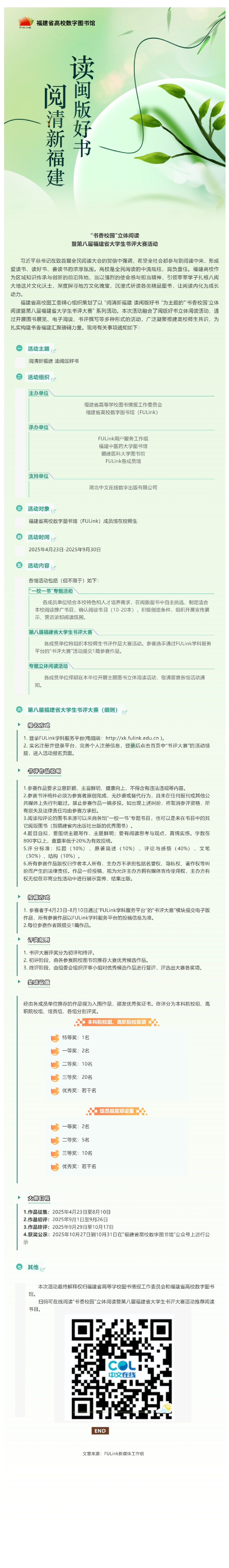 关于举办“书香校园”立体阅读暨第八届福建省大学生书评大赛活动的通知