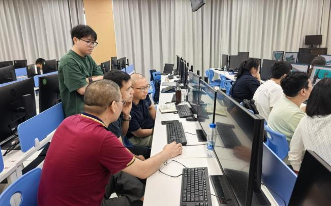 开班仪式结束后,师资培训正式进入实战环节。崔东明专家围绕Tecnomatix基础操作、虚拟调试与工艺仿真案例等内容进行了深入浅出的讲解。参训教师全神贯注,紧跟讲演节奏,在计算机上同步操作演练,积极提问交流,学习氛围浓厚。培训过程中,校企双方还就典型工艺仿真难点、教学融合路径等话题展开了热烈讨论,现场互动频频,反响积极。
