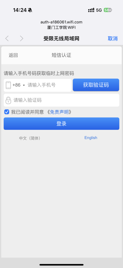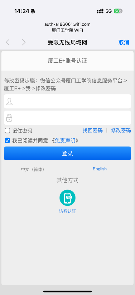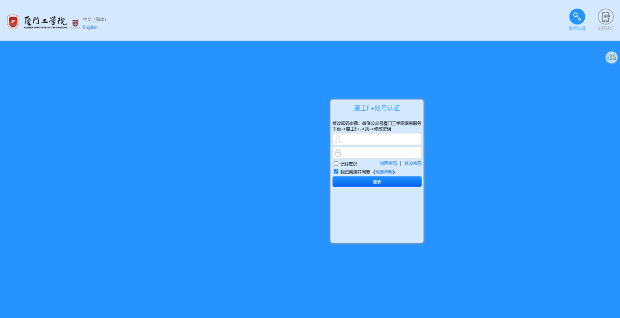 在厦门工学院学校内部可通过无线WiFi进行上网。用户可使用“厦工e+”账号密码登录,也支持访客认证方式:通过手机接收验证码即可临时上网。