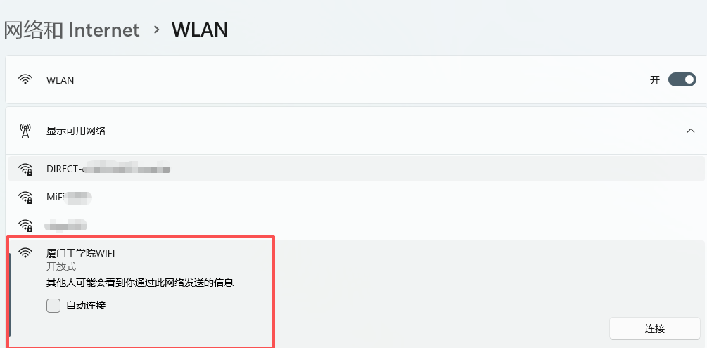 1.打开WLAN,选择“厦门工学院WIFI”;